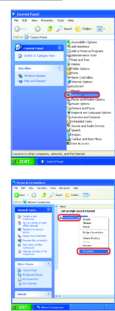 Go to Start>Control Panel>Network Connections