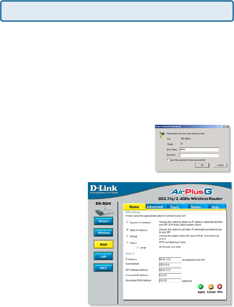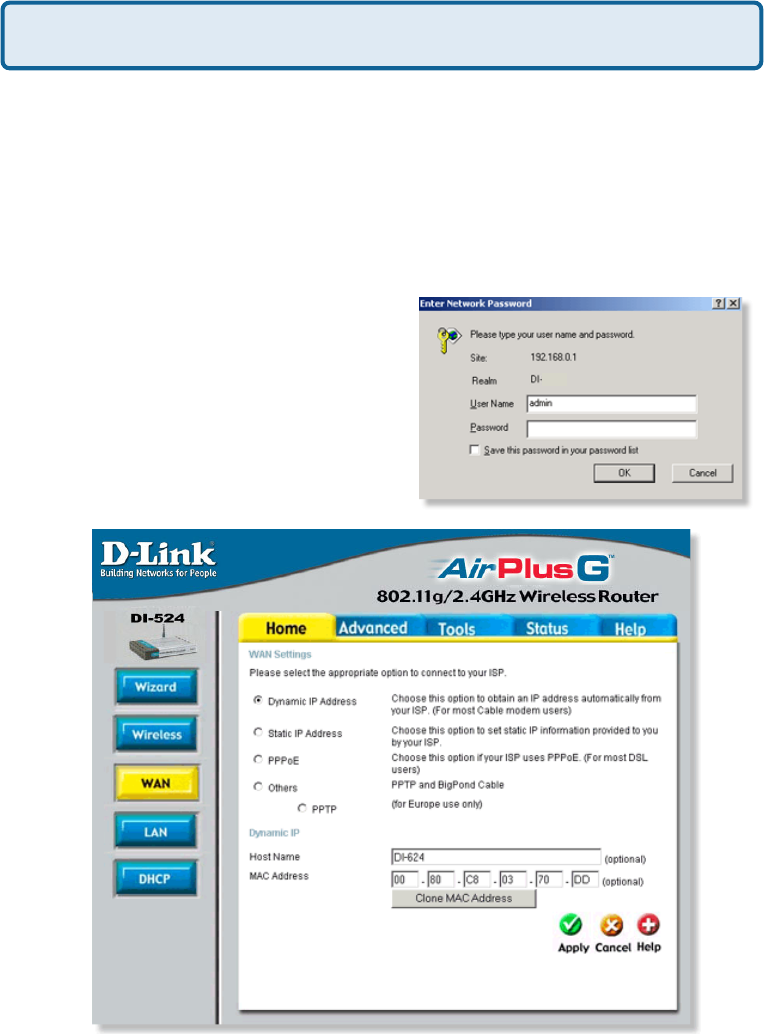 Note: The IP Address of the DI-524 is 192.168.0.1. All the computers on the