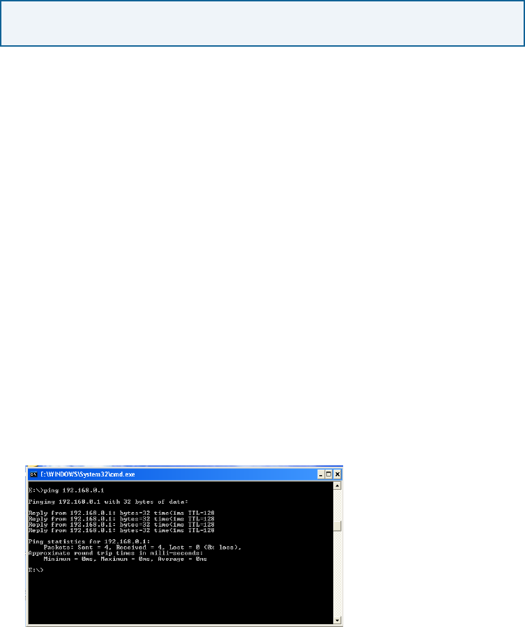 Start>Run>Type Command>Type ping 192.168.0.1. A successful