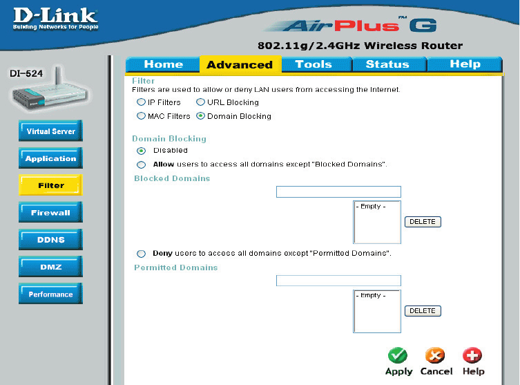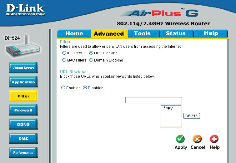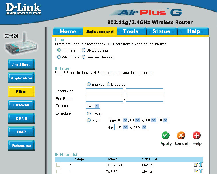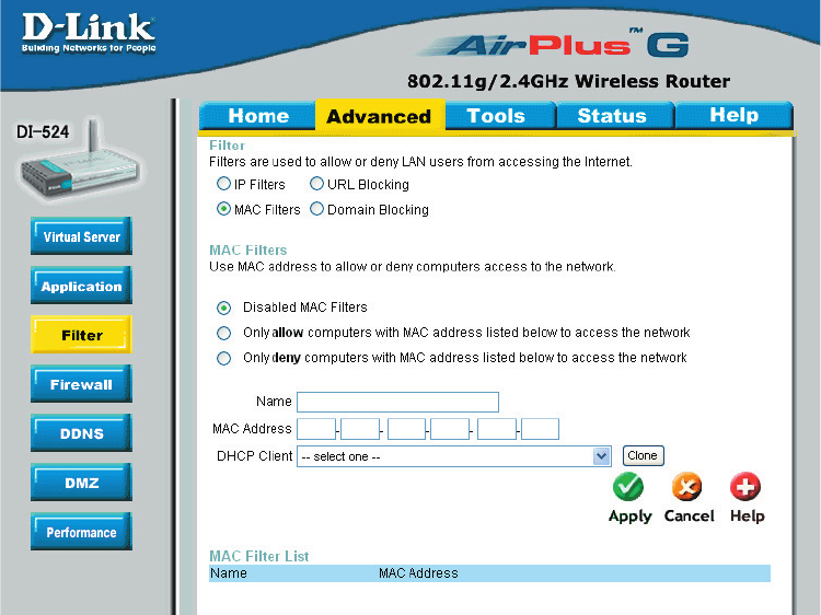 through the DI-524. It works in the same way as IP Filters with additional settings. You