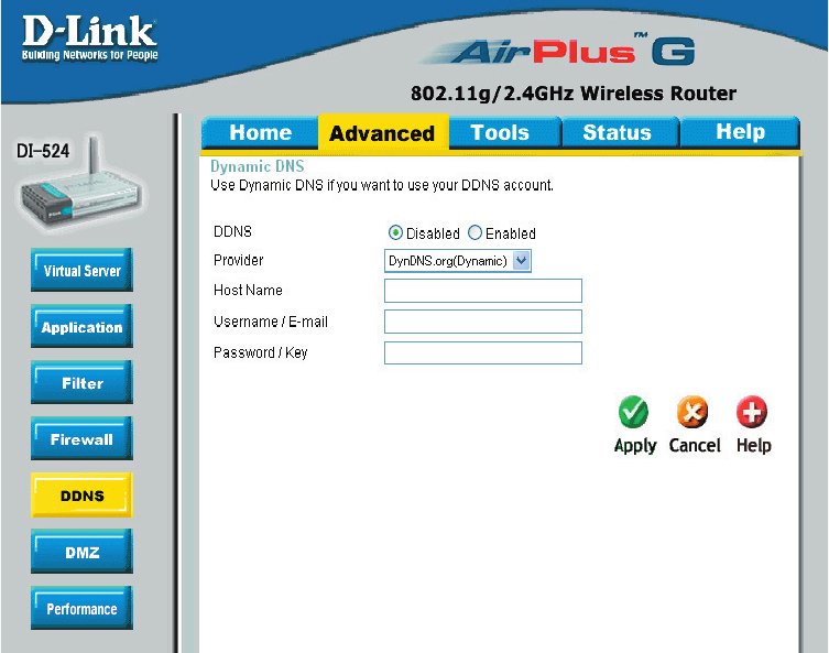 Users who have a Dynamic DDNS account may use this feature on the DI-524.