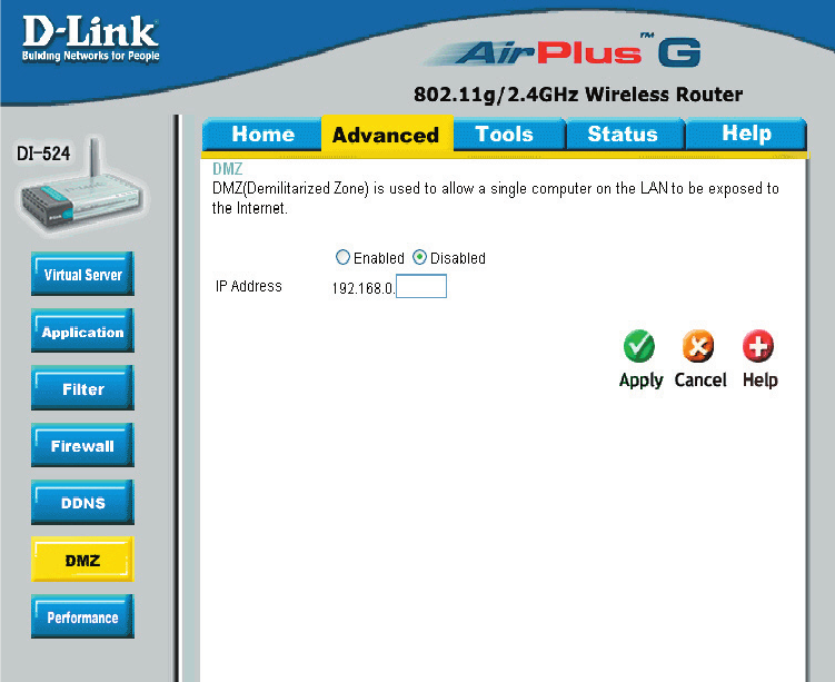 Advanced > DMZ