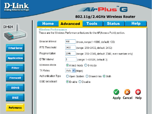 can create more detailed access rules for the DI-524. When virtual services are created