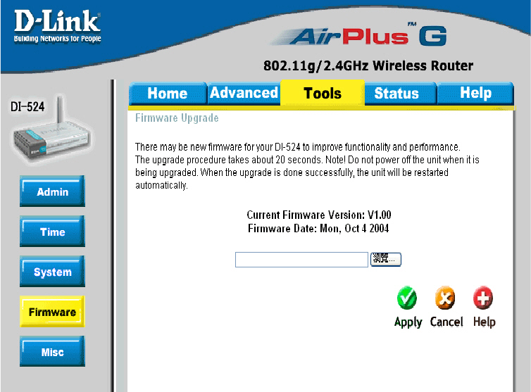 Click Apply to complete the rmware upgrade.