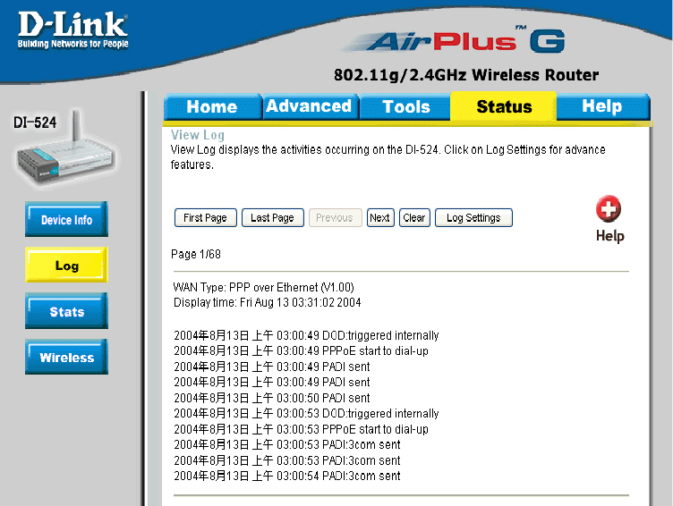 This window will show the DI-524’s working status: