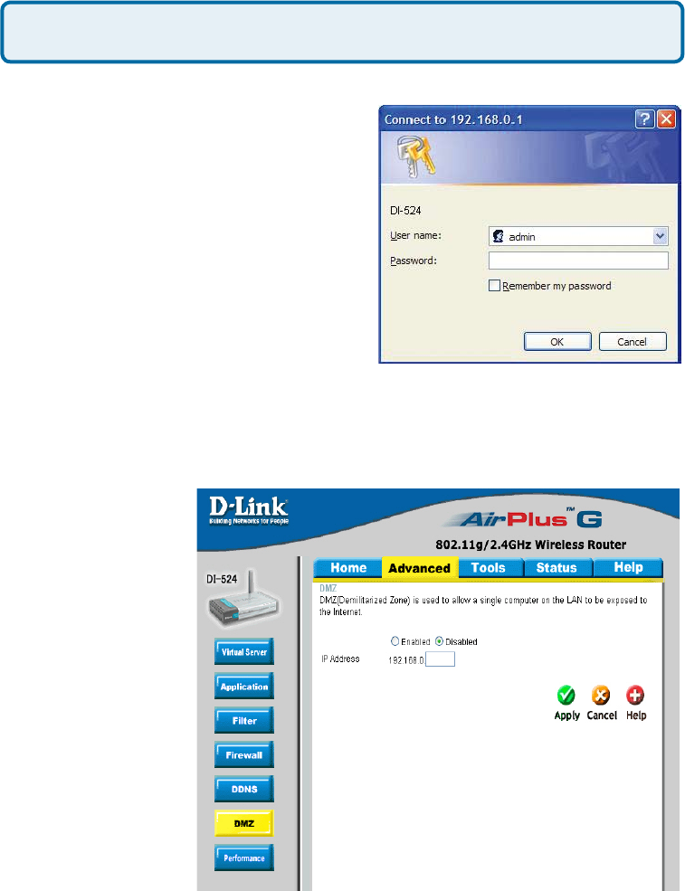 your web browser. The default IP Address is 192.168.0.1. Login using your password.