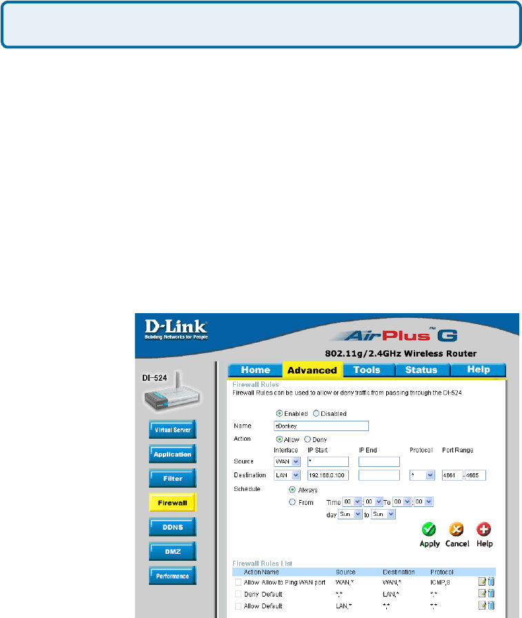 You must open ports on your router to allow incoming trafc while using eDonkey.
