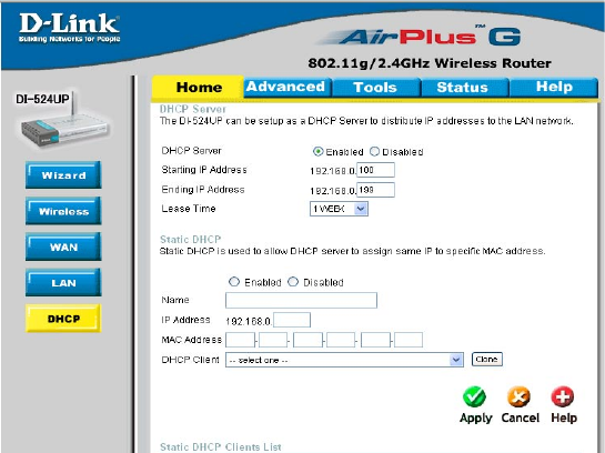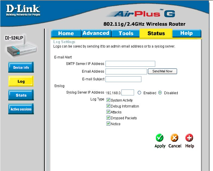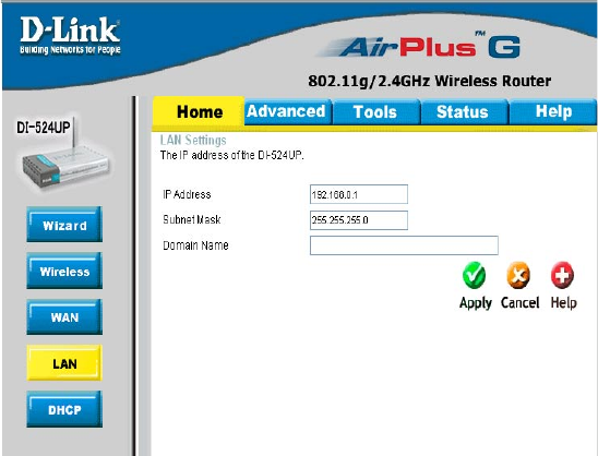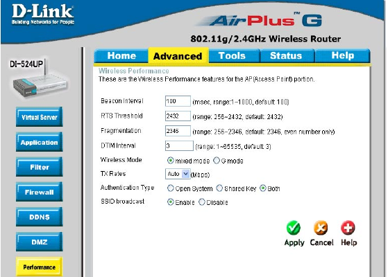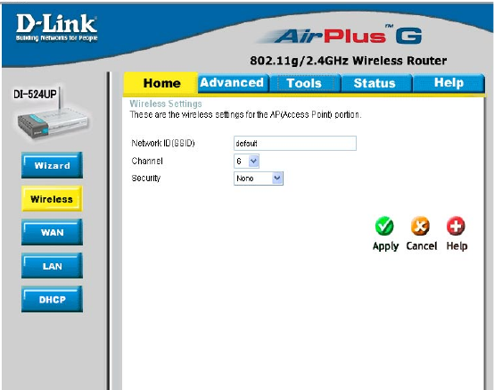 The D-Link AirPlus G DI-524UP High-Speed Wireless Router is an 802.11g high-