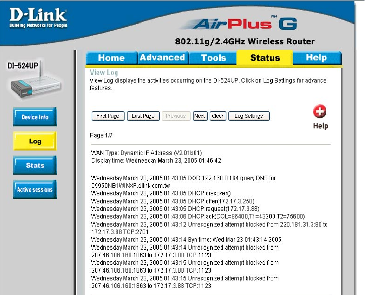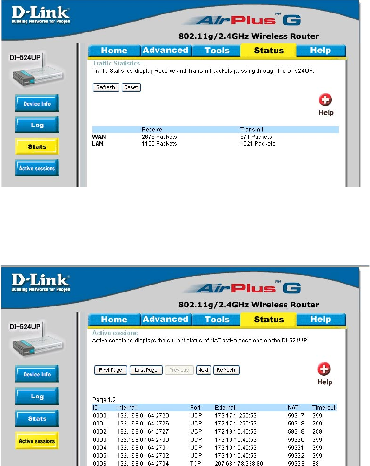 ets that pass through the DI-524UP on both the WAN and the LAN ports. The traffic