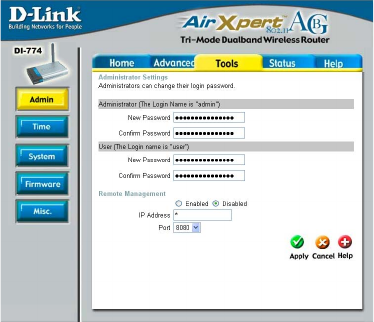 Remote Management allows the DI-774 to be configured from the Internet by a web
