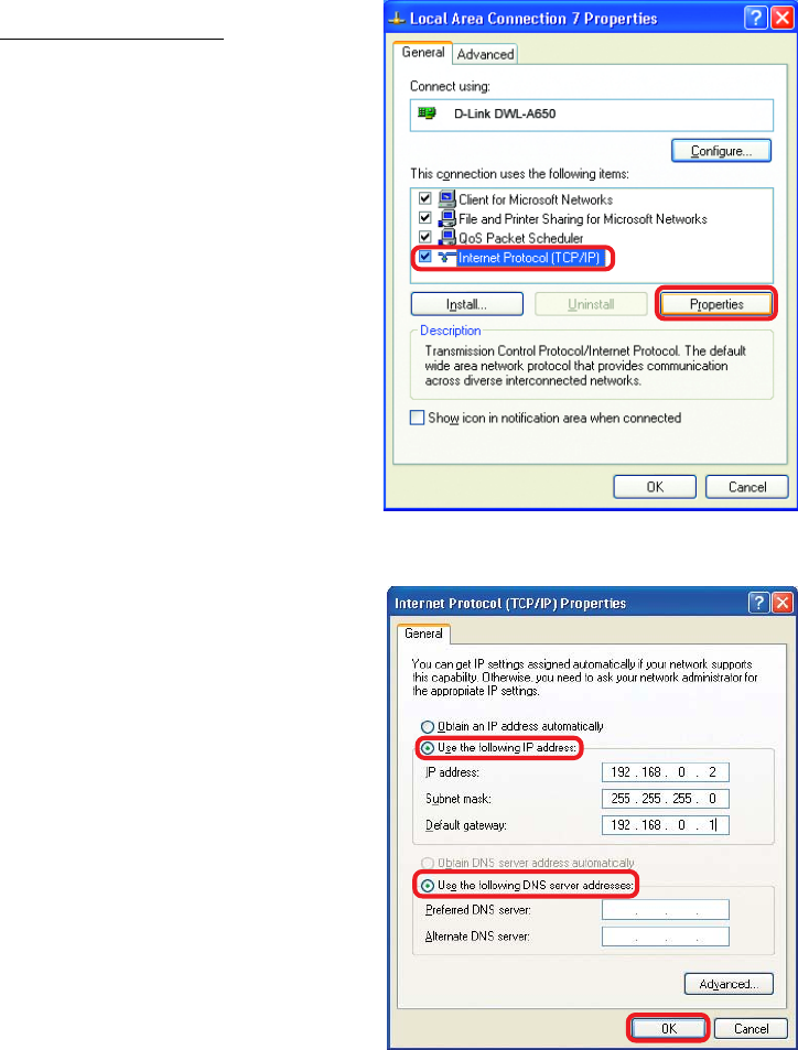 If it is necessary to assign a Static IP Address to the wireless adapter,