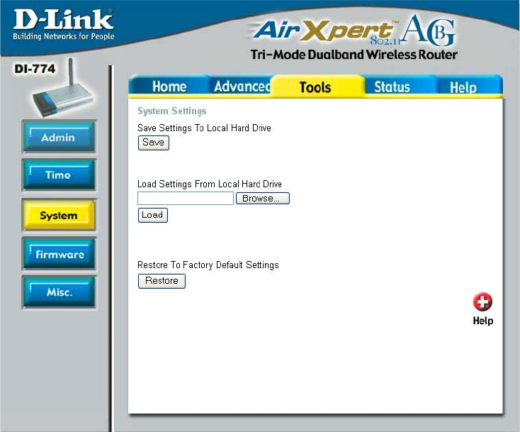 choose to Reset the DI-774 to the factory default settings. Remember that D-