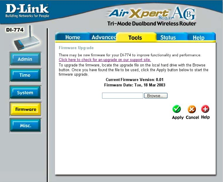 After you have downloaded the new firmware, click Browse in