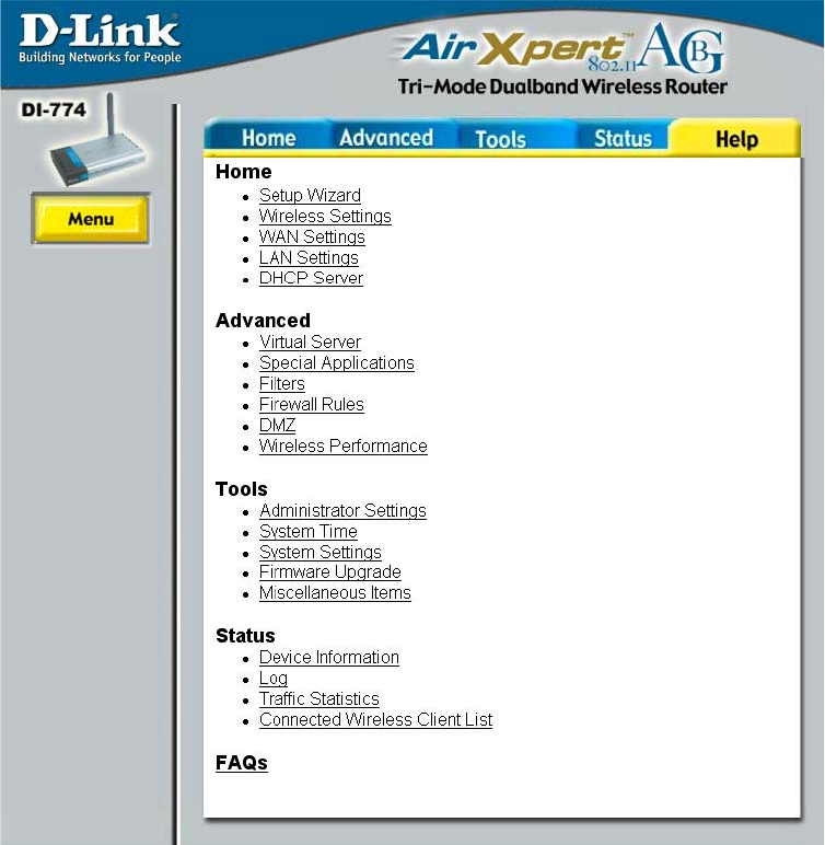 configure the DI-774 Wireless Broadband Router.