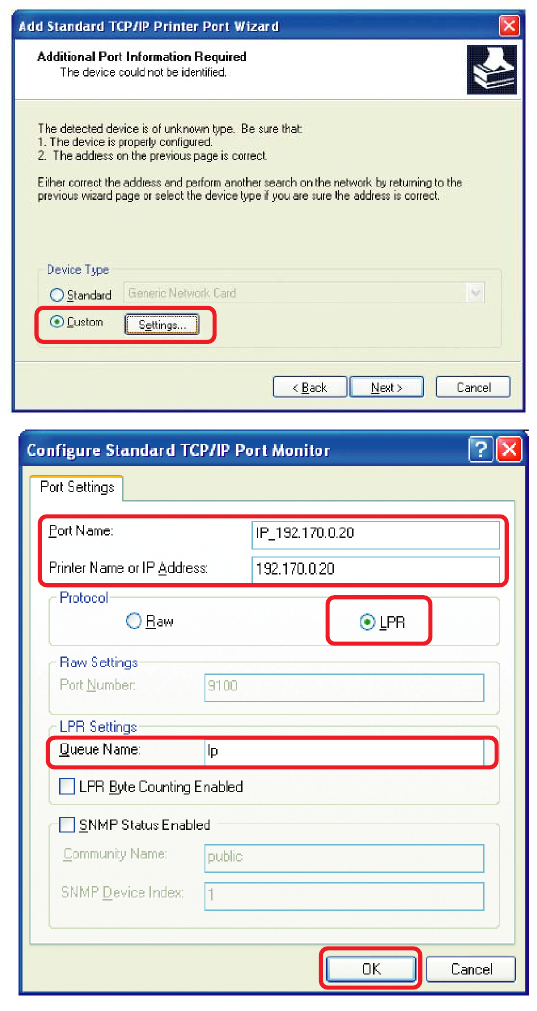 To share an LPR printer (using a print server,) you will need a Print Server such as