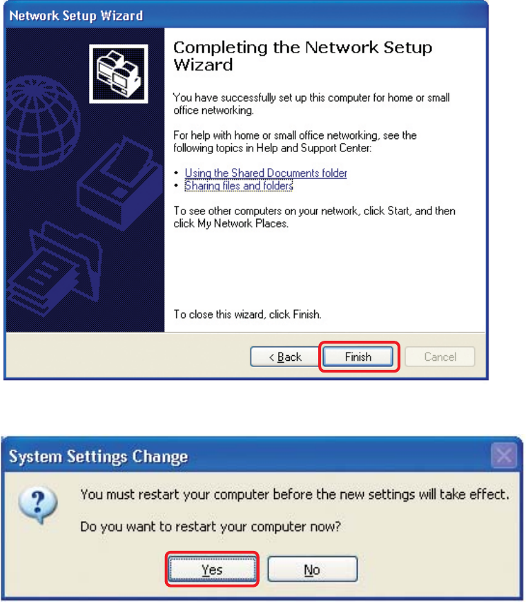 Note: You must run the Network Setup Wizard on all the computers on your network before