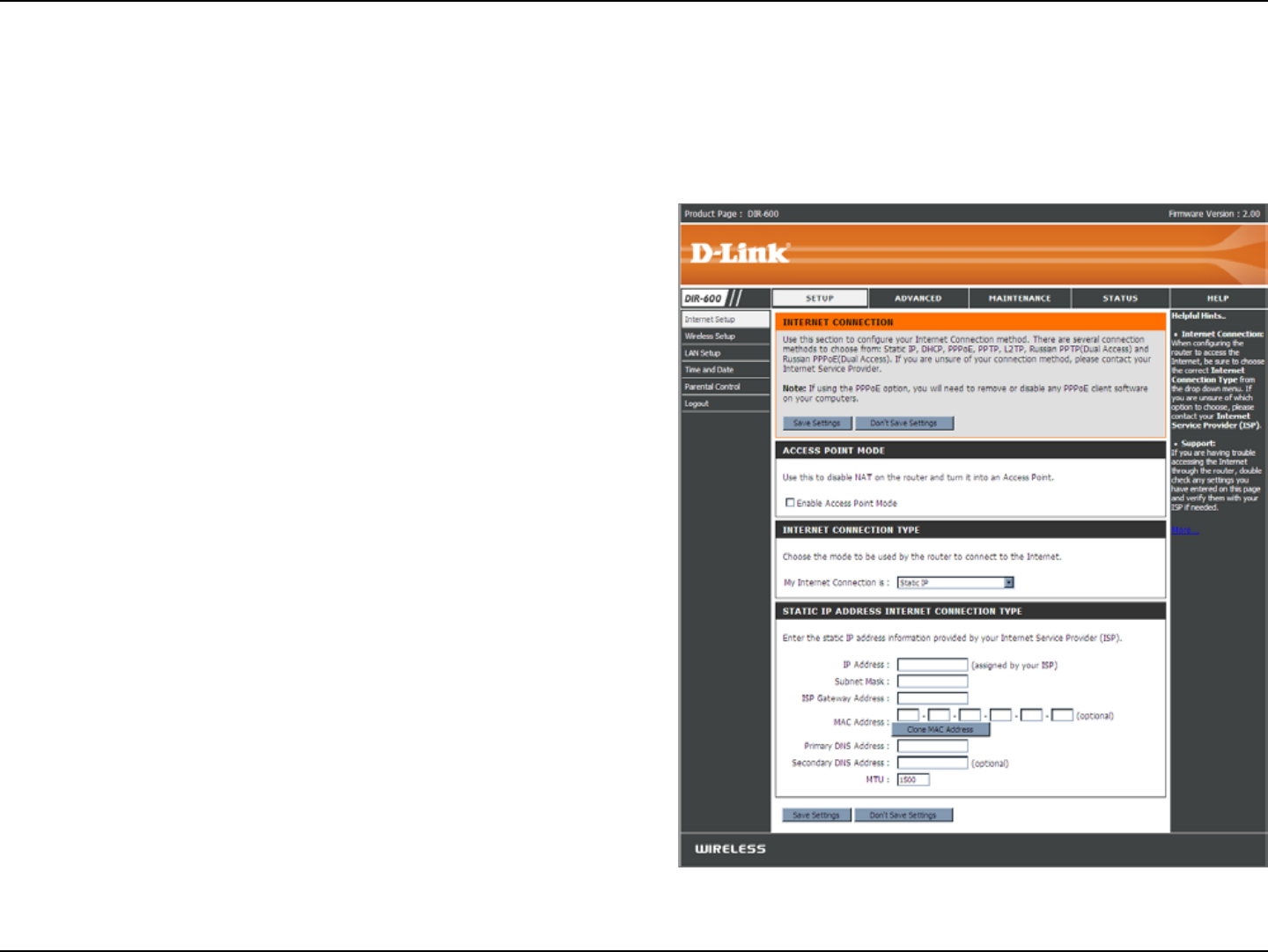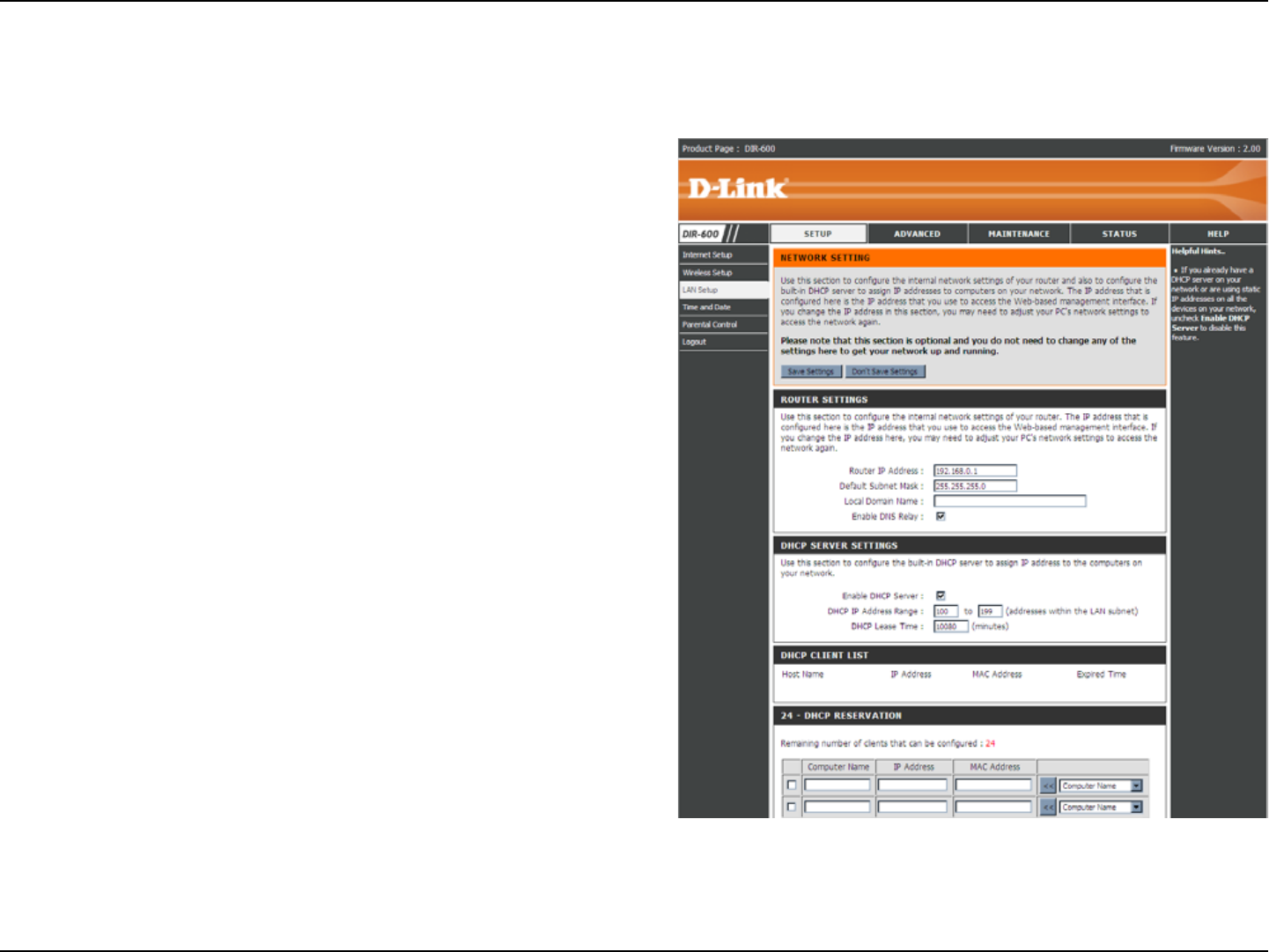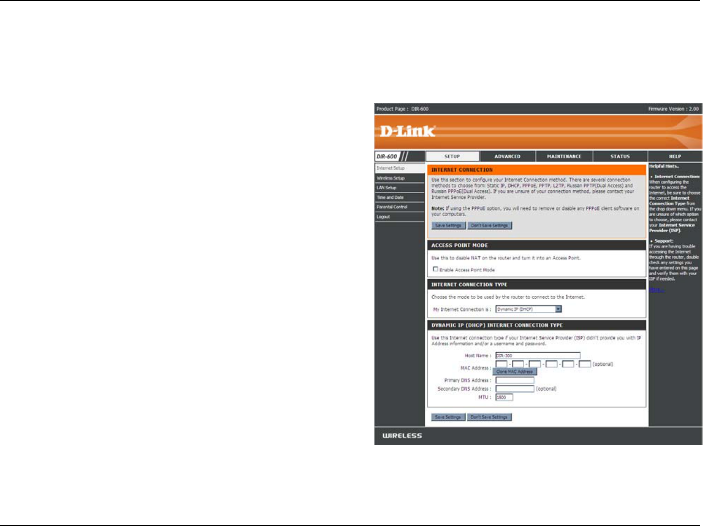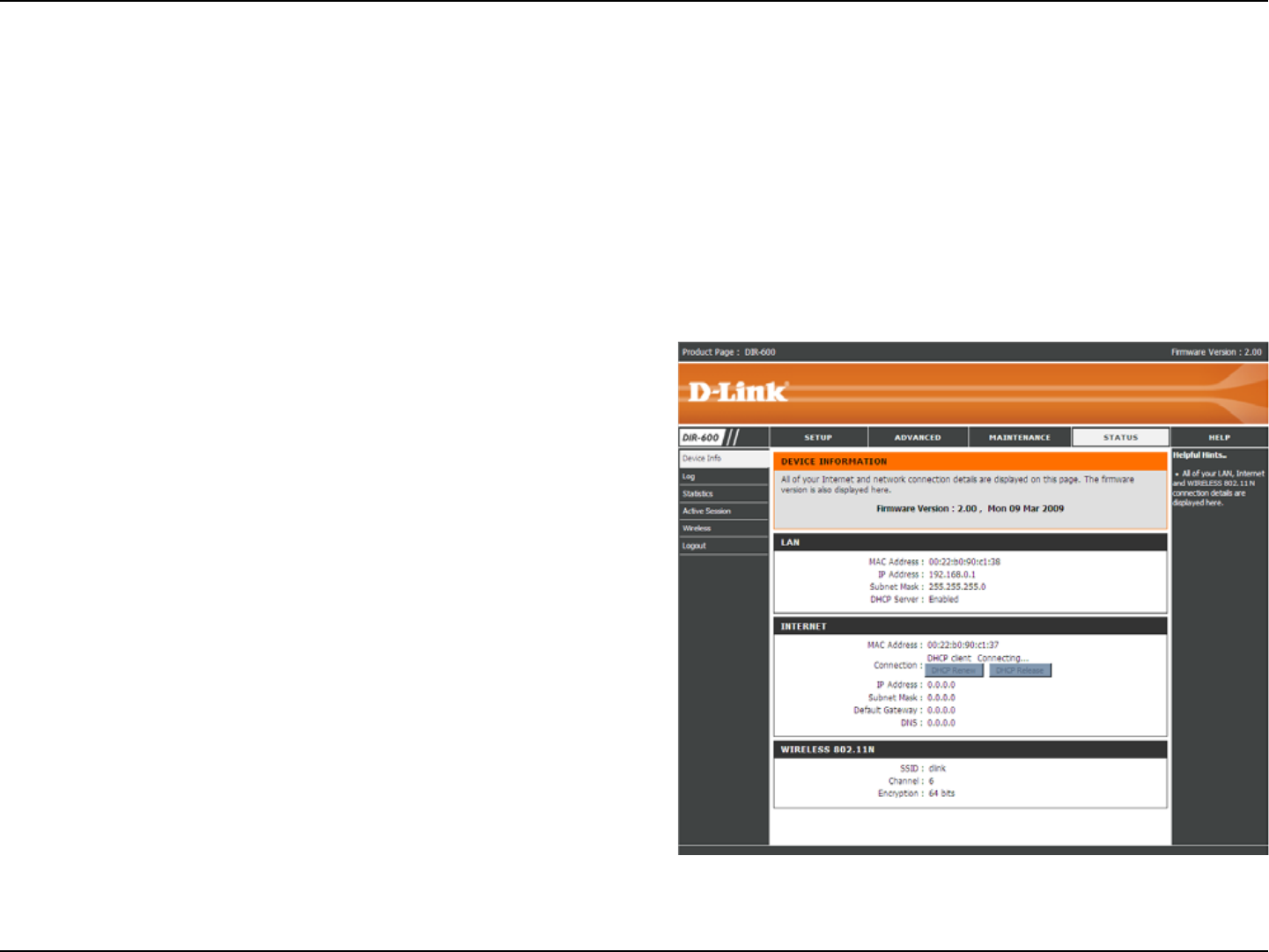 This window displays the current information for the DIR-600. It will display the LAN, WAN, and Wireless
