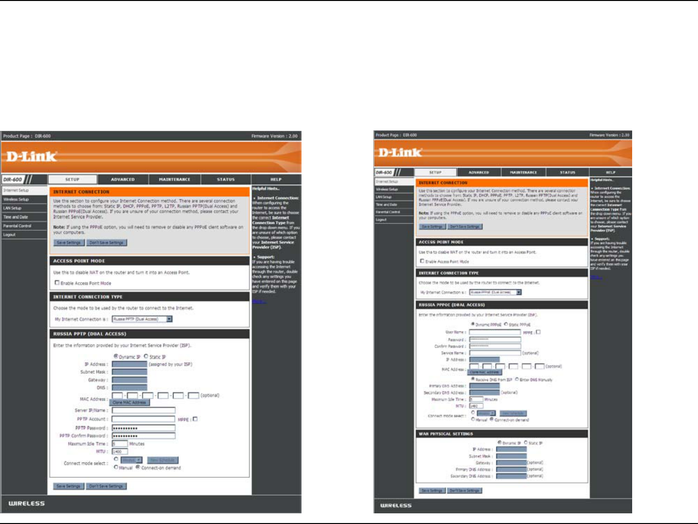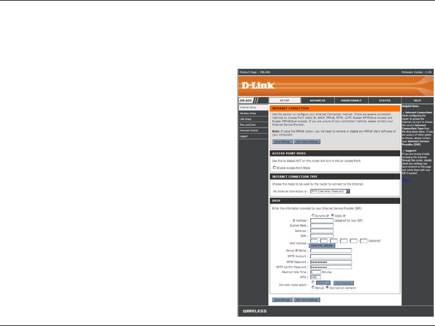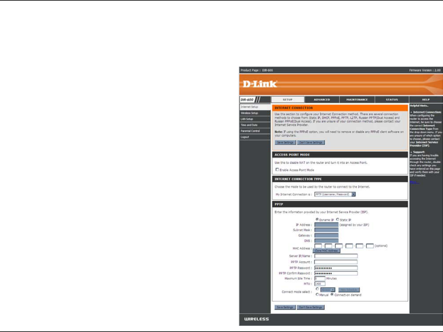 If your WAN connection is set up for PPPoE, a Connect button and a Disconnect button will be displayed. Use