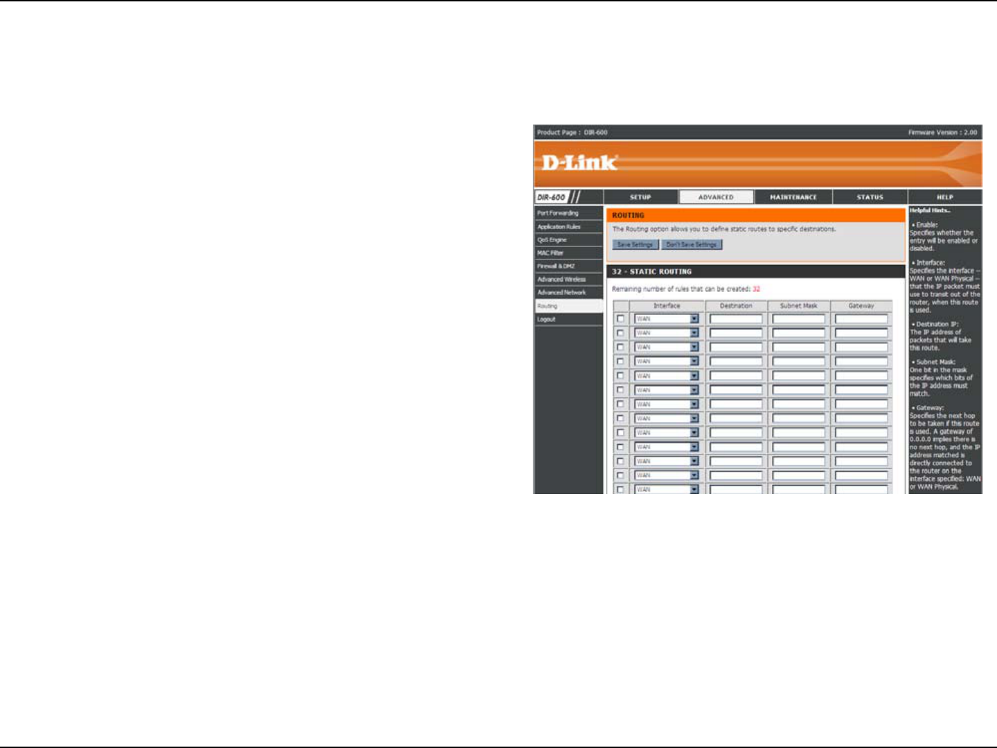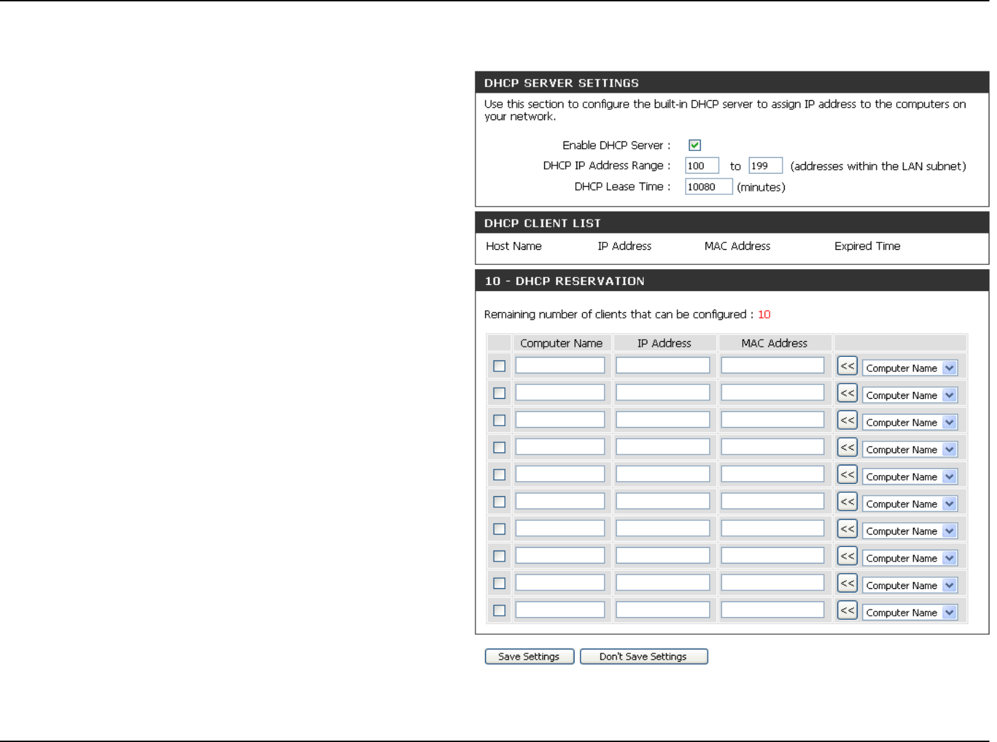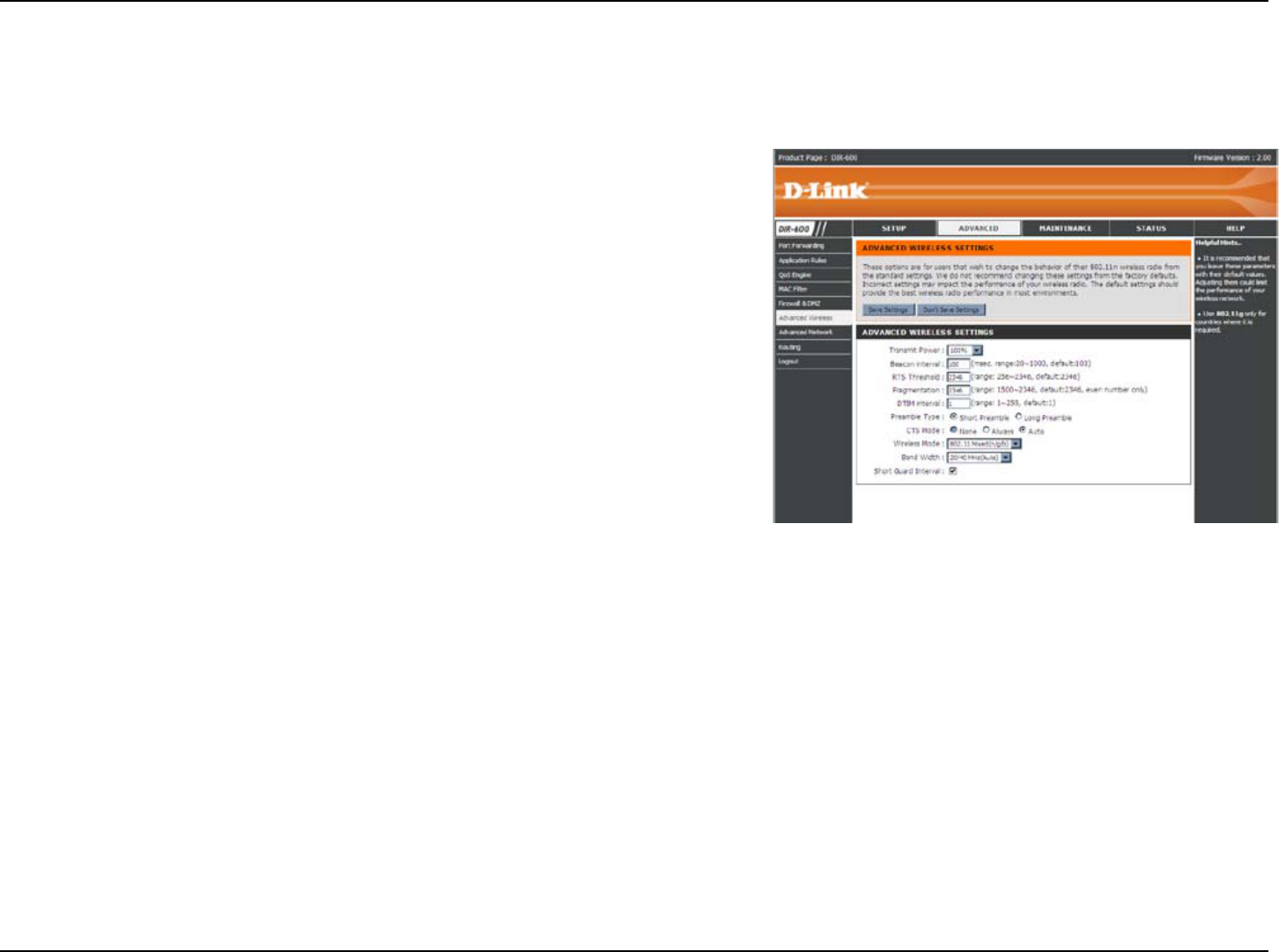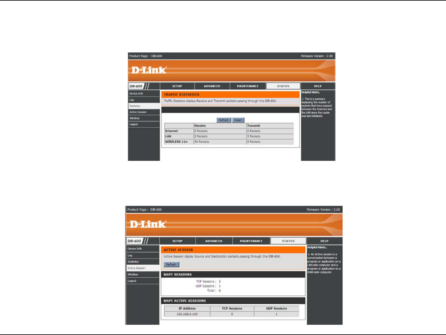 The window below displays the Trafc Statistics. Here you can view the amount of packets that pass through the DIR-600