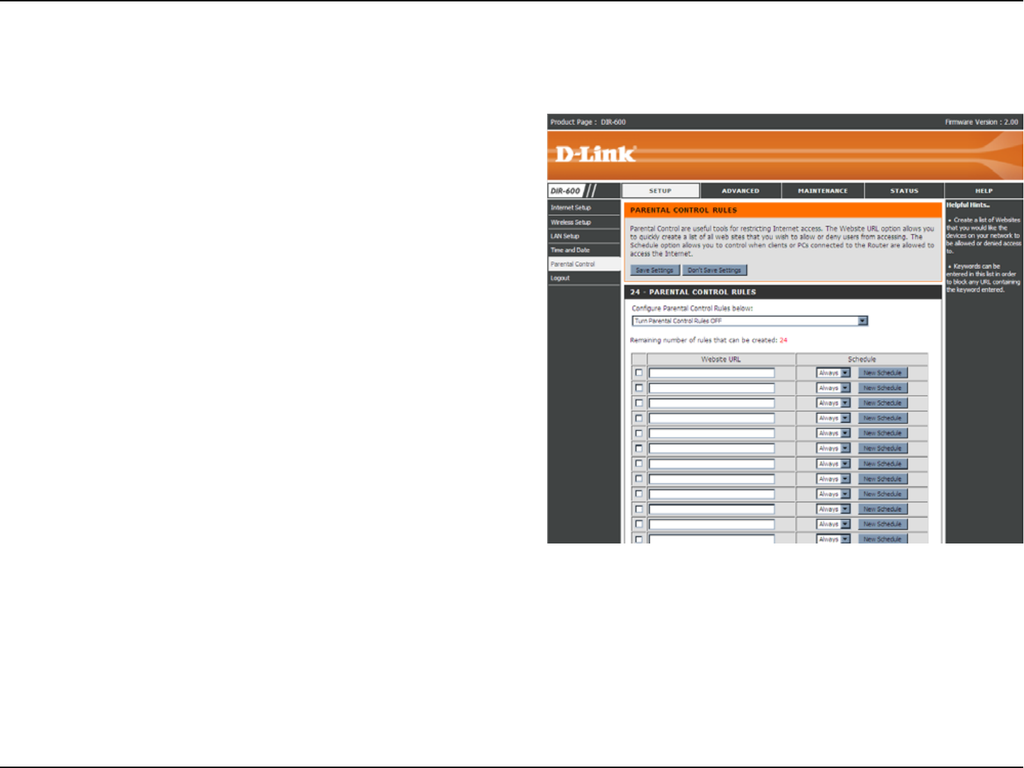 The Router allows the user the ability to manage schedule rules for various rewall and parental control features on