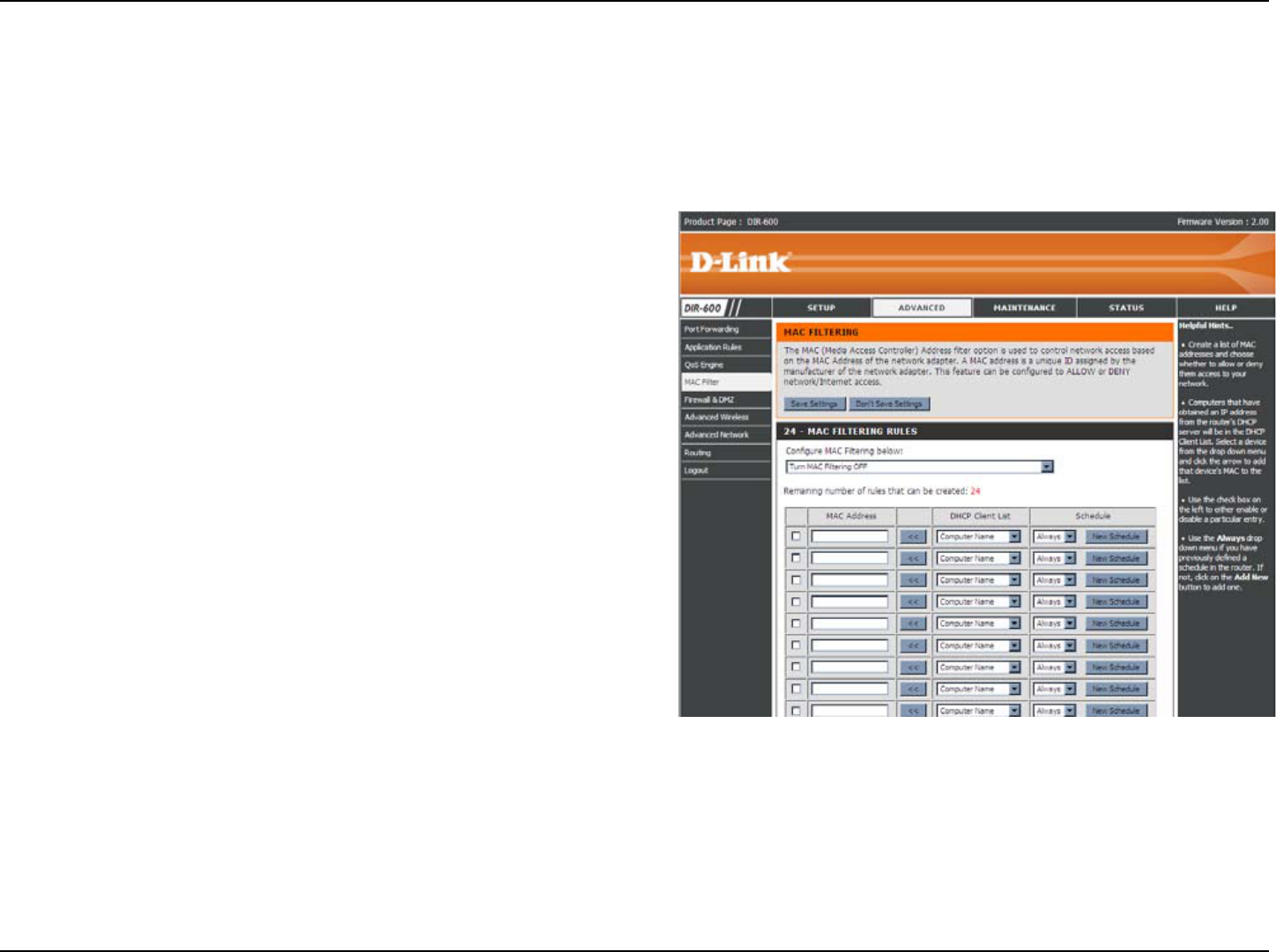 this window. Once you have nished conguring the new schedule rule, click the Save Settings button at the top of