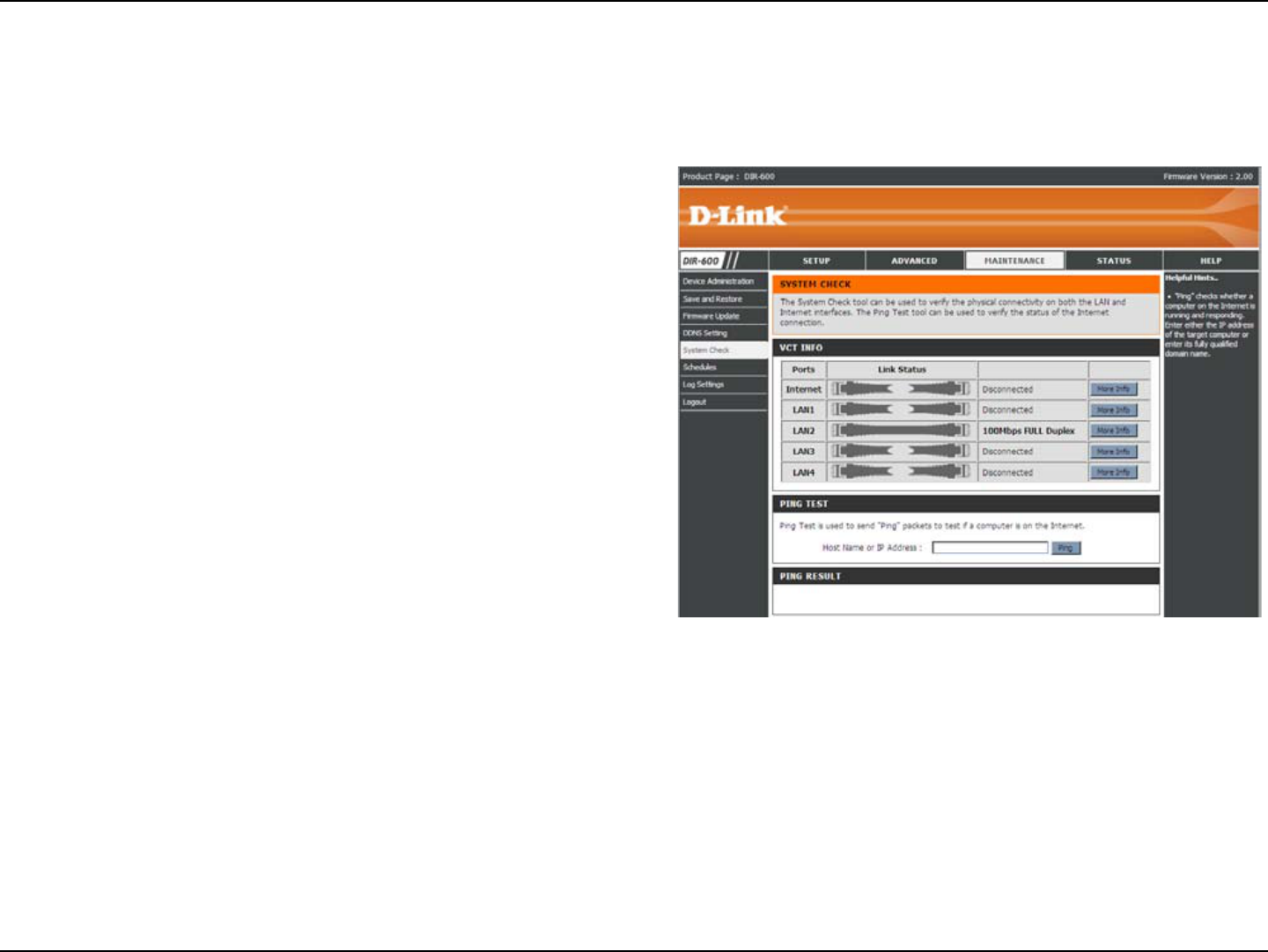 This tool is used to verify the physical connectivity on both the LAN and the WAN interfaces. The Ping Test can be