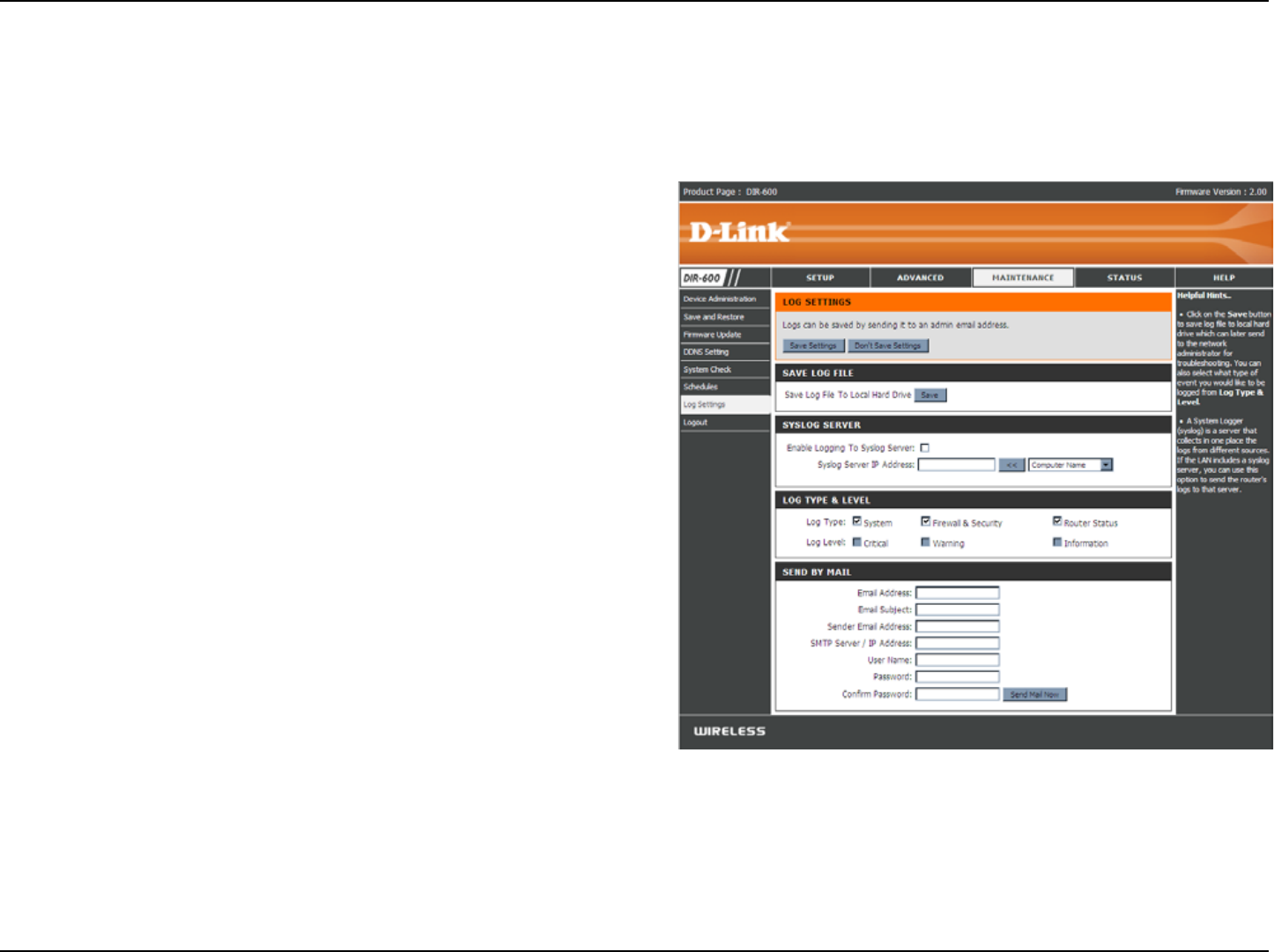 The system log displays chronological event log data specied by the router user. You may also save a simple text le