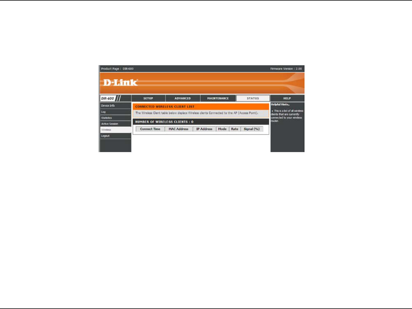The wireless client table displays a list of current connected wireless clients. This table also displays the connection