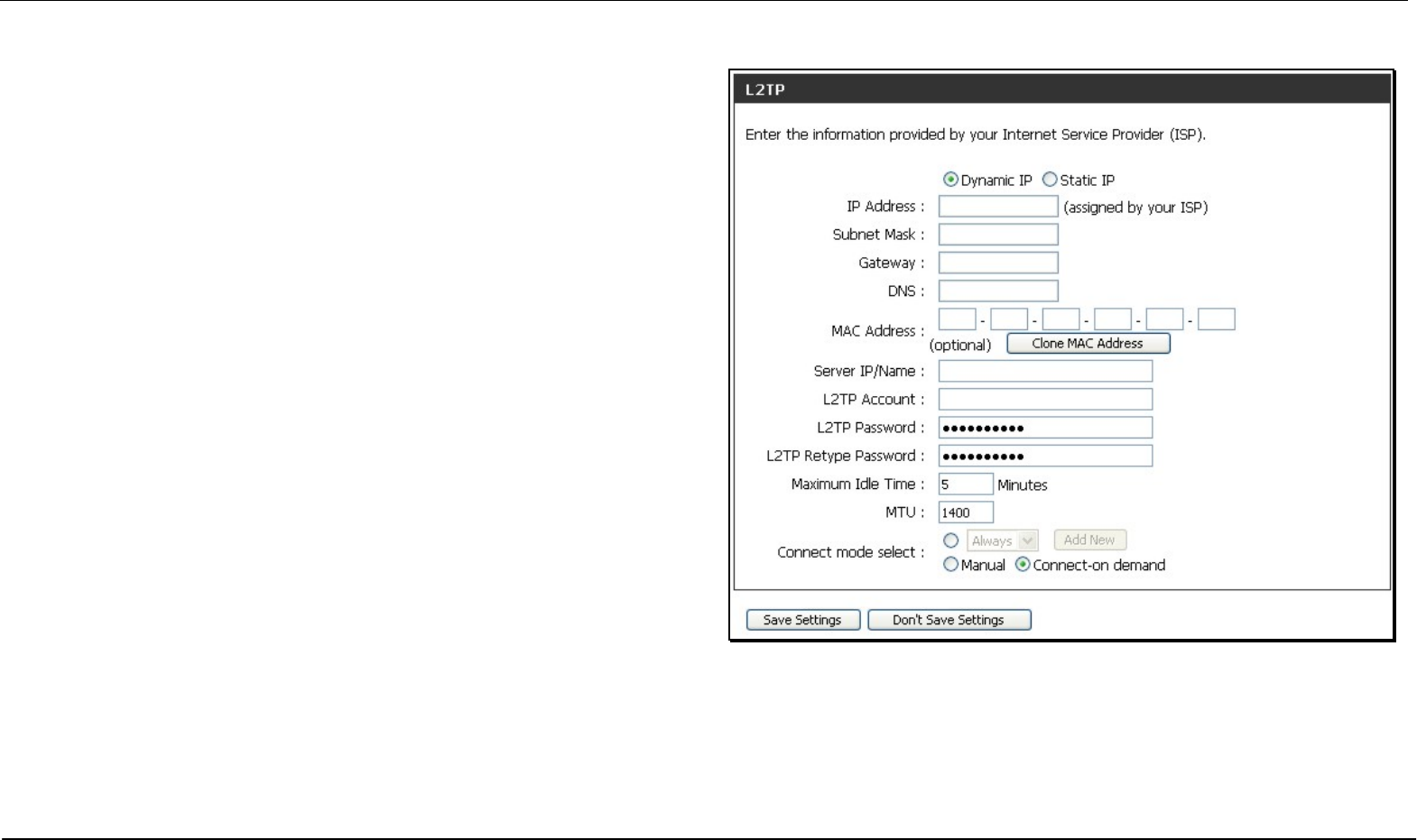 Username/Password (L2TP) - To configure the L2TP client connection,