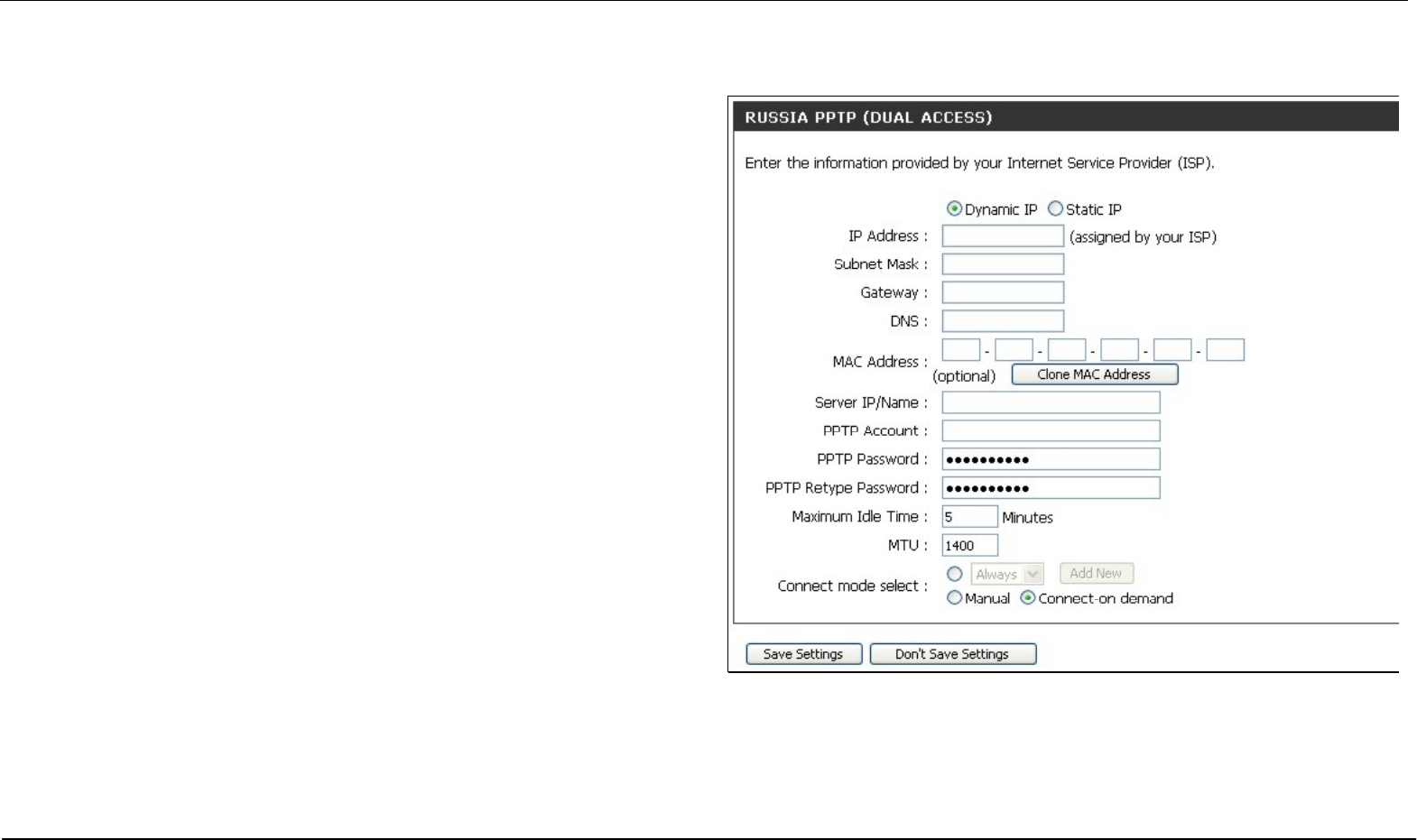 Address Mode Dynamic IP or Static IP, type in the Username and