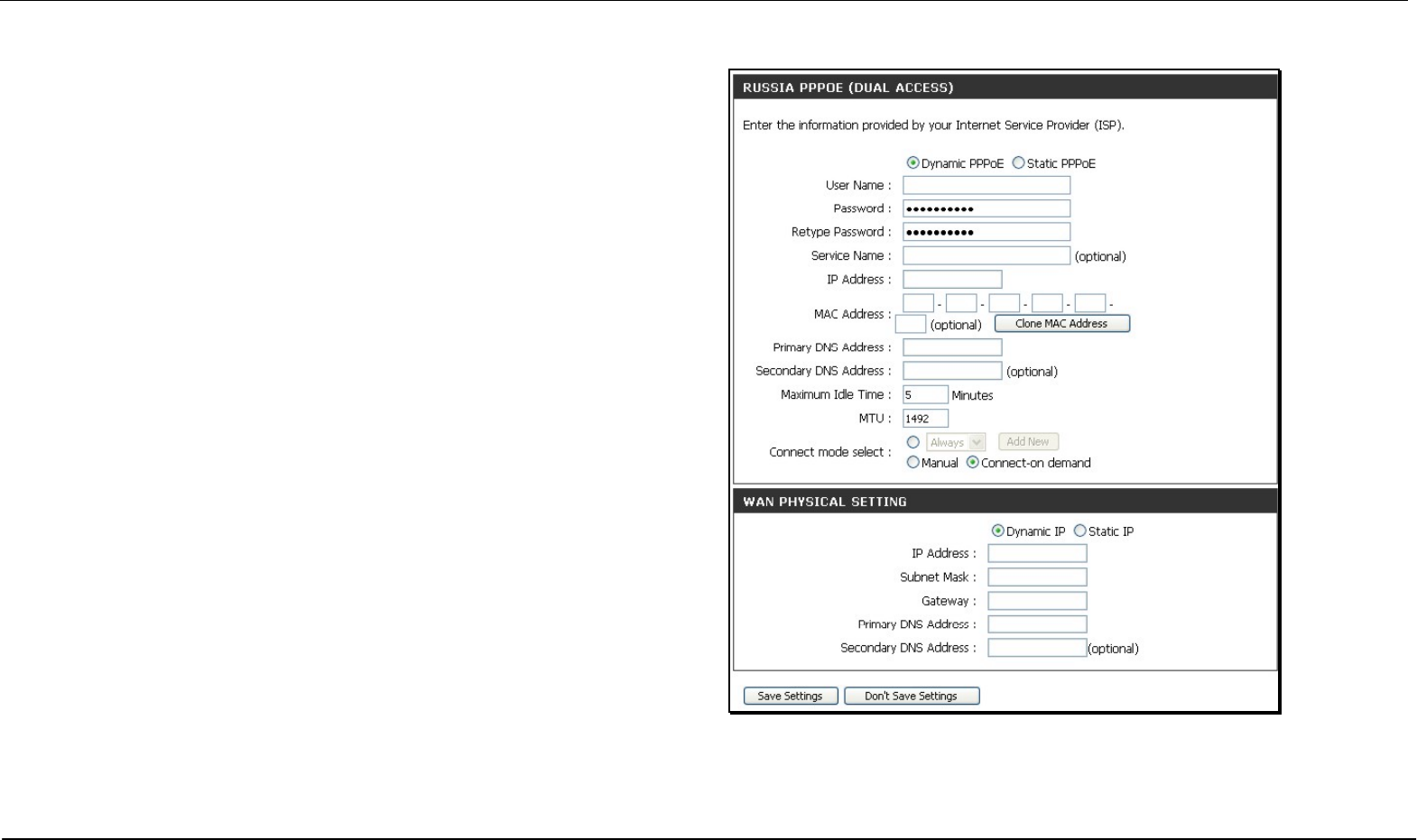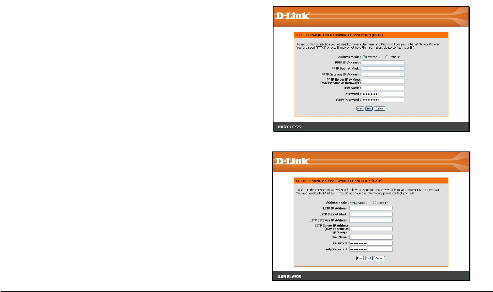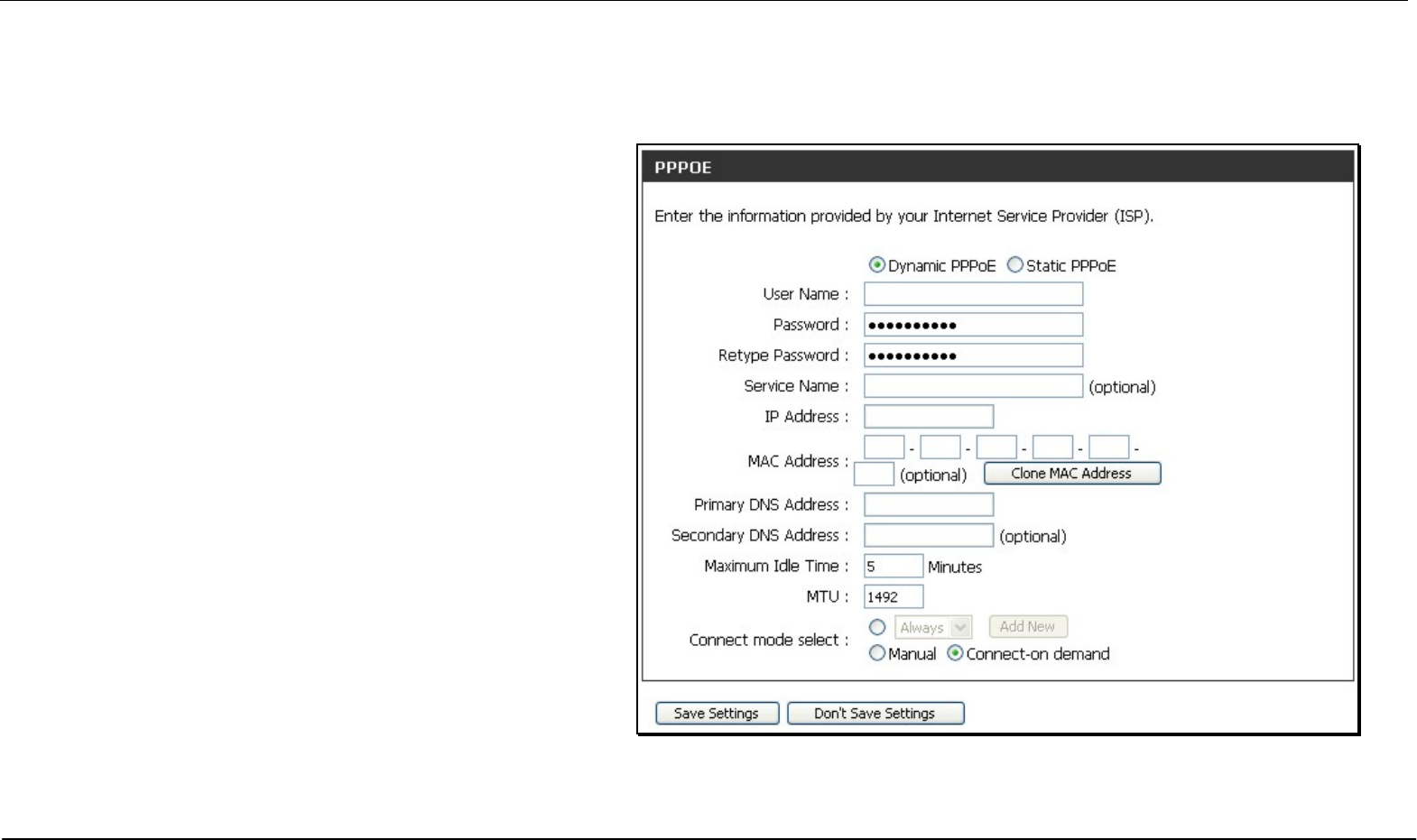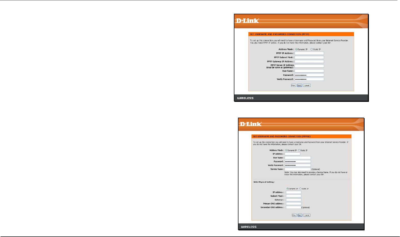Username/Password (PPPoE) - For PPPoE connections, select the