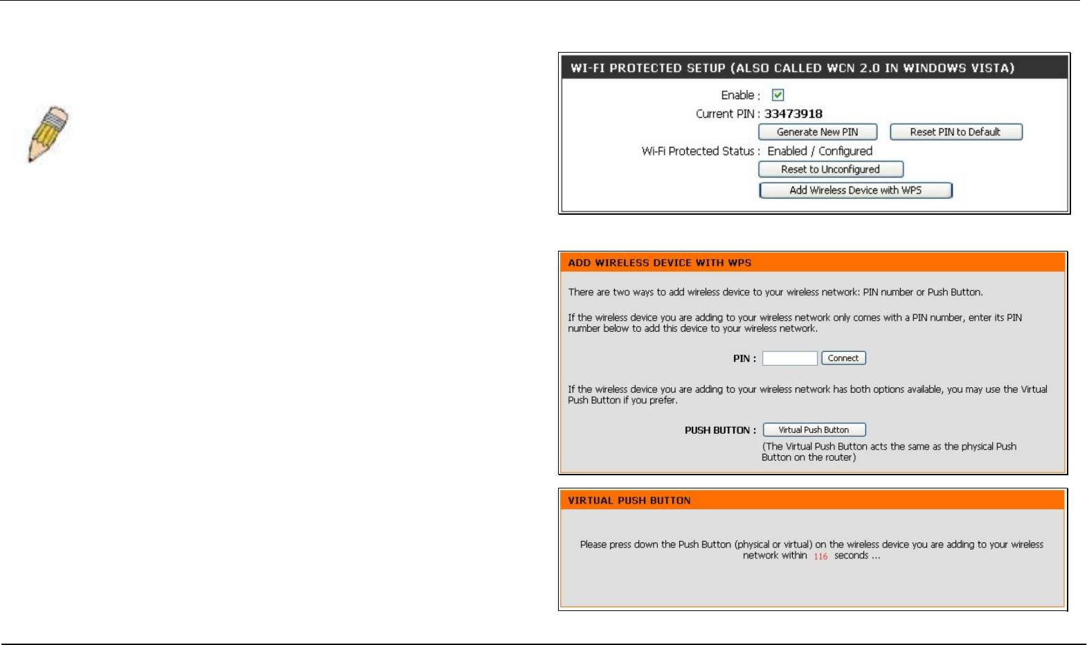 To use the automatic WPS method, click on the Virtual Push Button. The