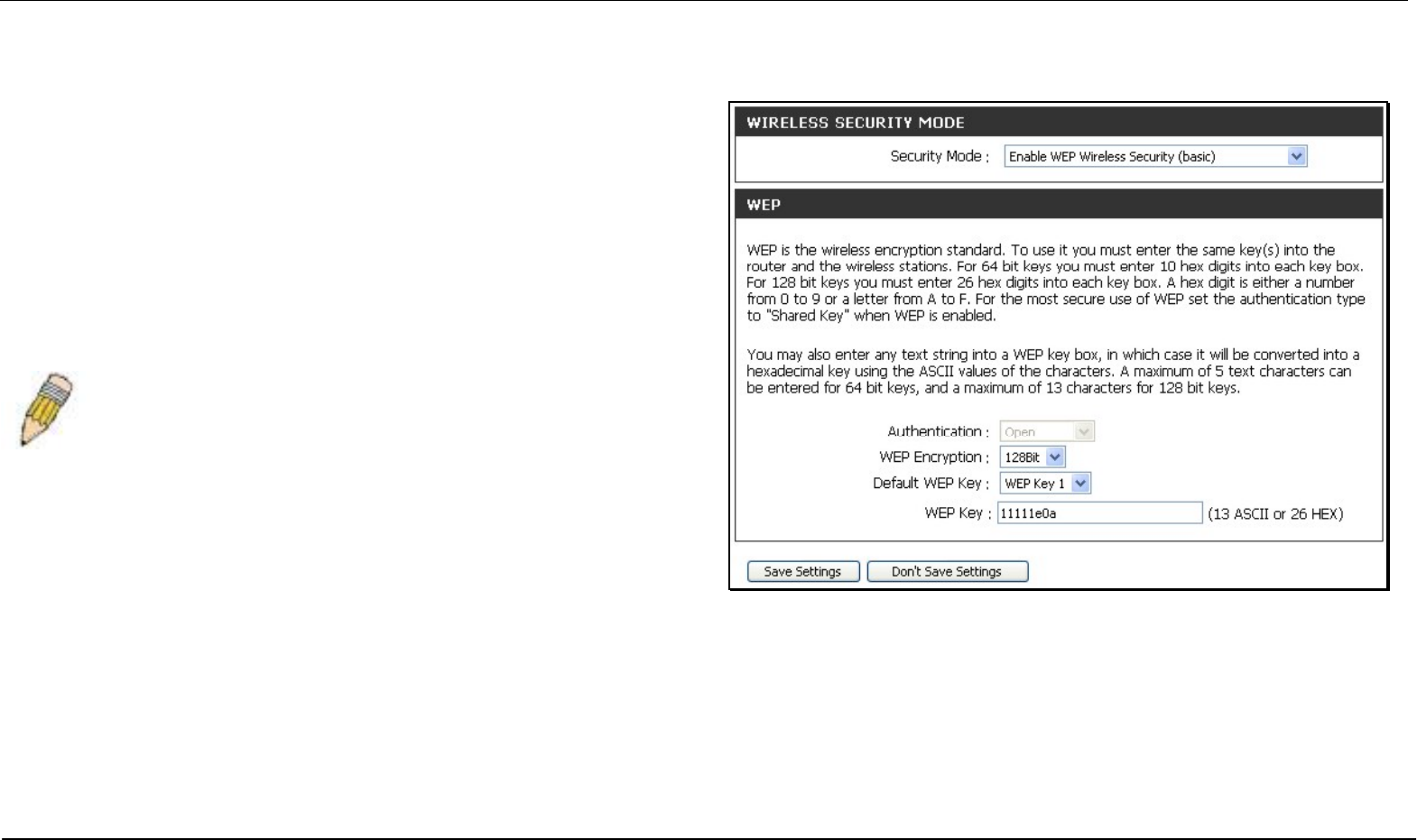 • WEP Key: Type an ASCII or Hex key of appropriate length for the