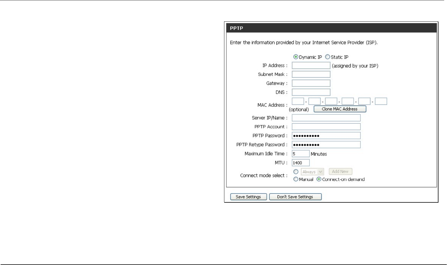 Username/Password (PPTP) - To configure the PPTP client connection,