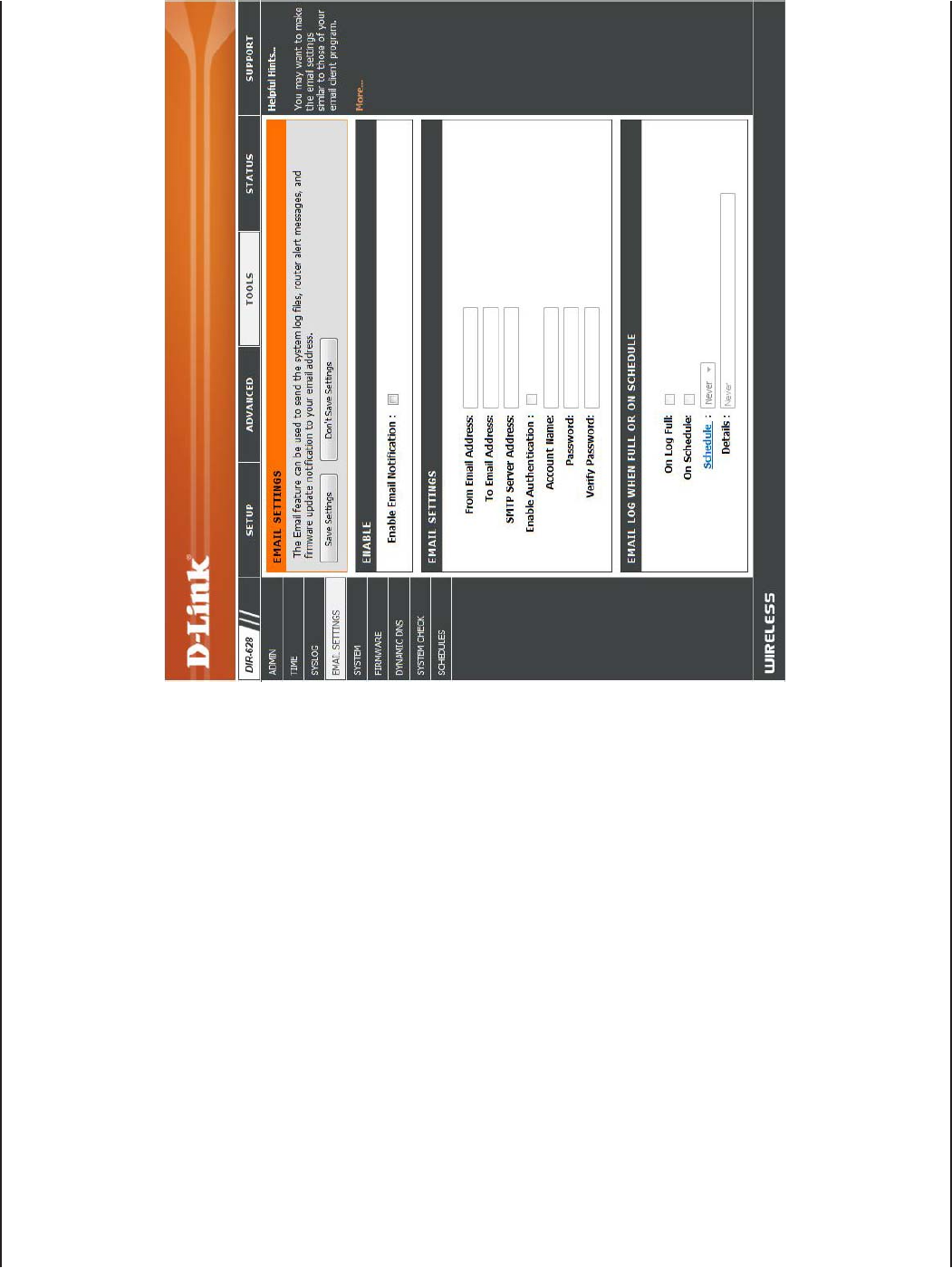 The Email feature can be used to send the system log files, router alert messages, and firmware update notification