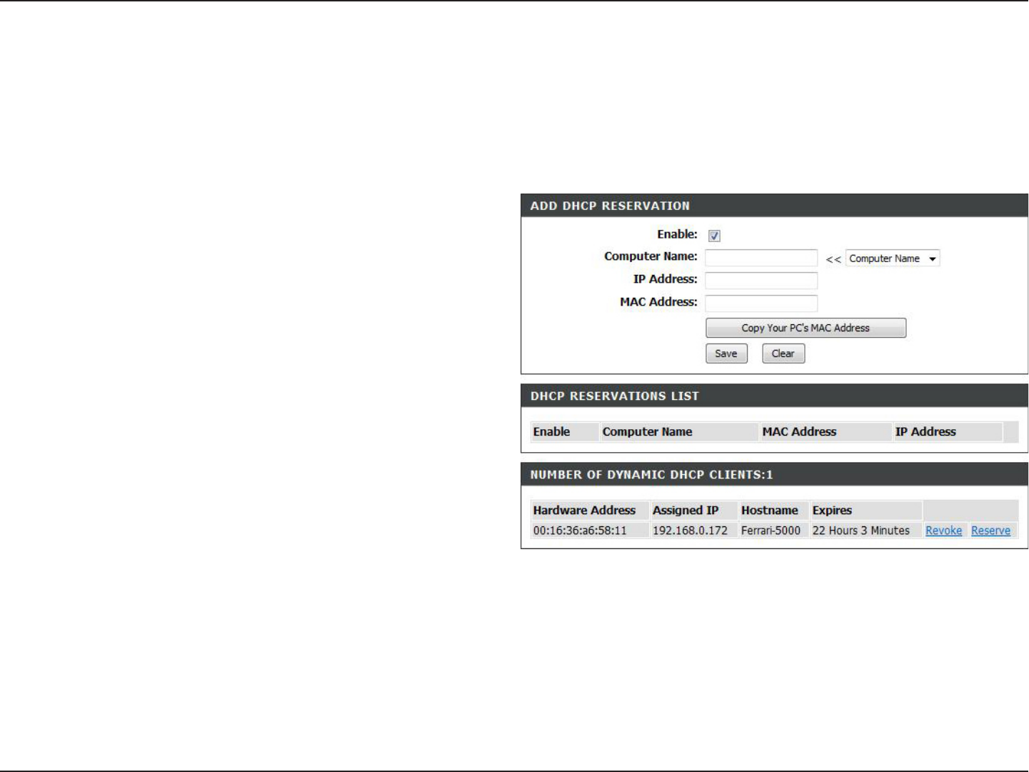 If you want a computer or device to always have the same IP address assigned, you can create a DHCP reservation.
