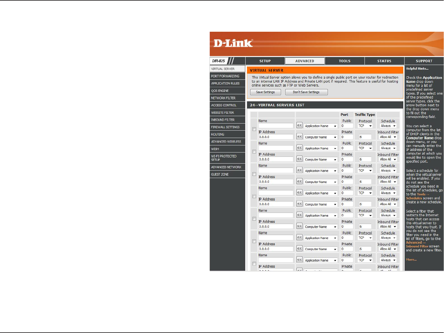 The DIR-825 can be configured as a virtual server so that remote users accessing Web or FTP services via the public