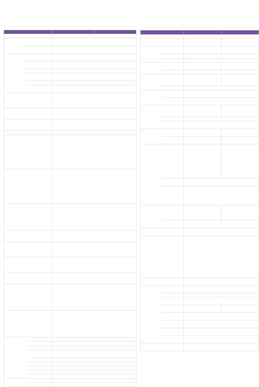 Comparison Tables