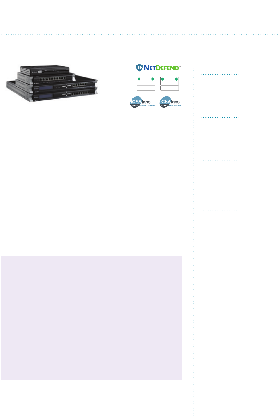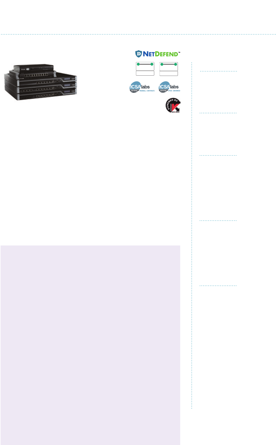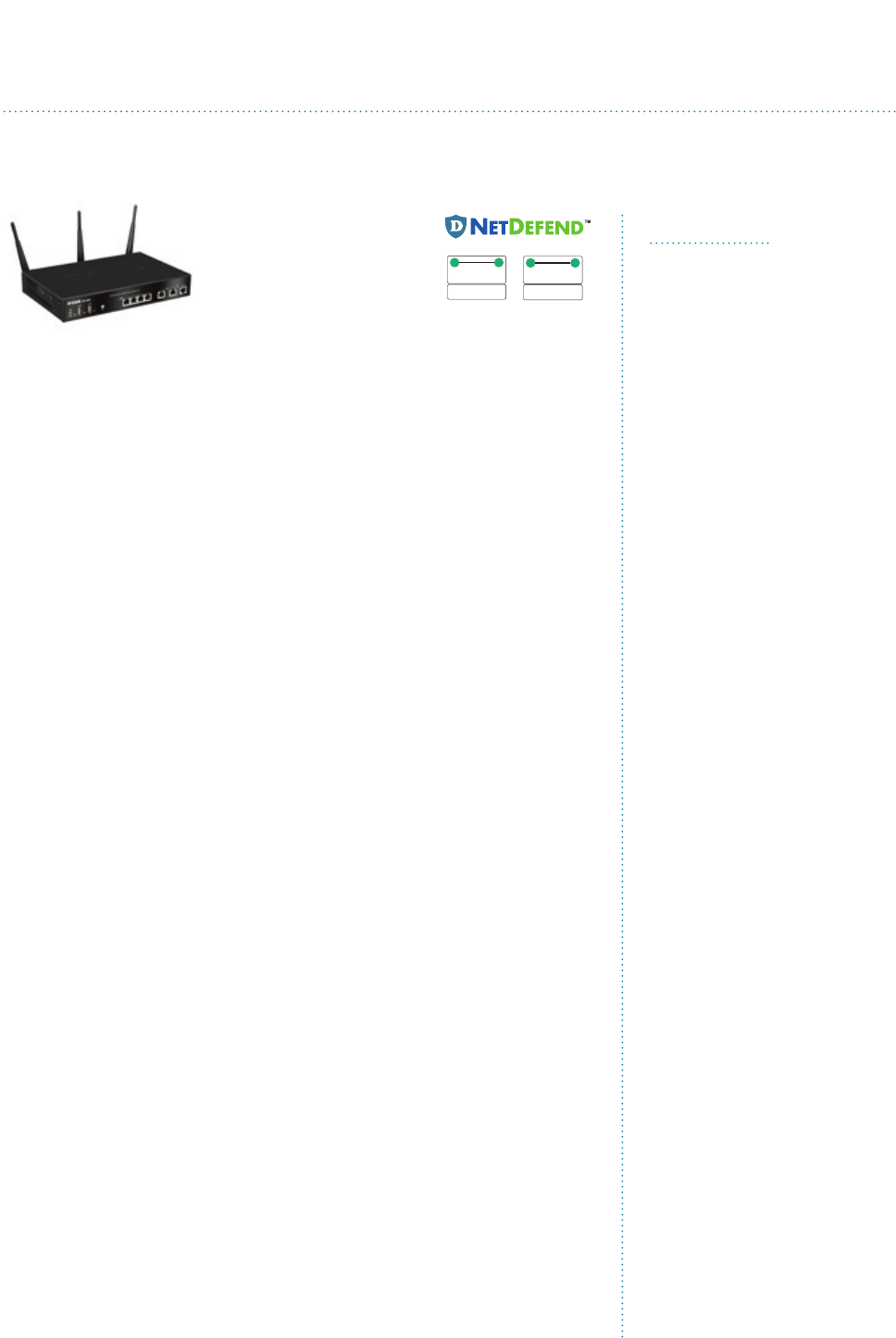70 NetDefend Firewall Selection Matrix
