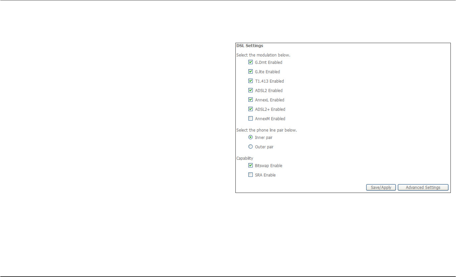 To access the DSL Settings window, click the DSL Setup button in the Advanced Setup directory.