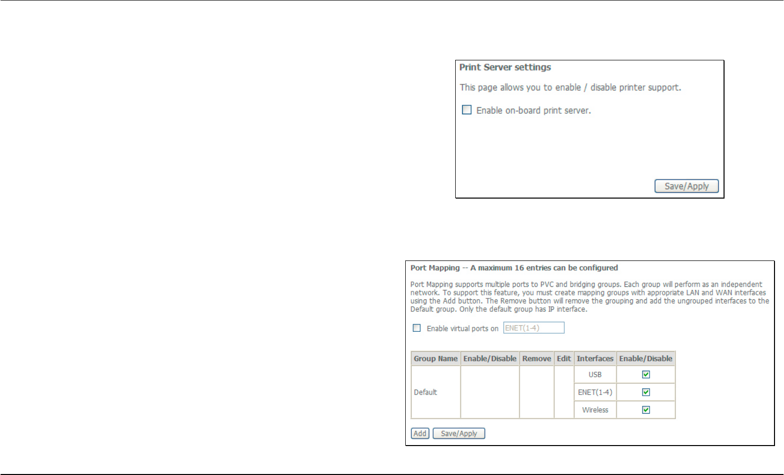 To access the Port Mapping window, click the Port Mapping button in the Advanced Setup directory.