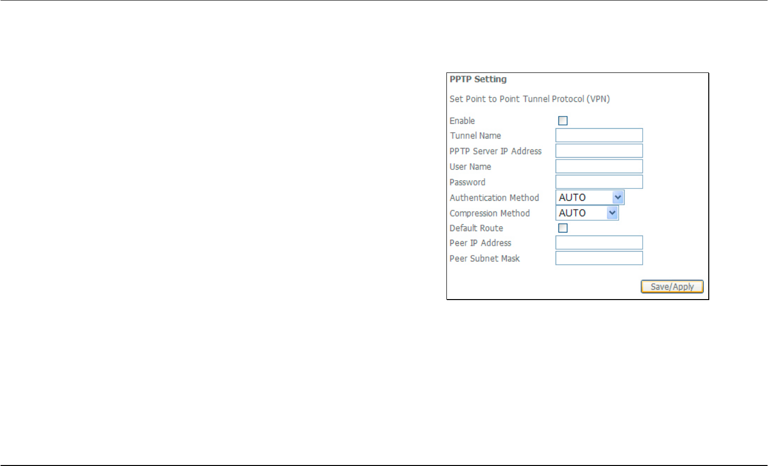To access the PPTP Setting window, click the PPTP button in the Advanced Setup directory.