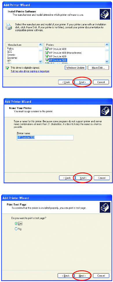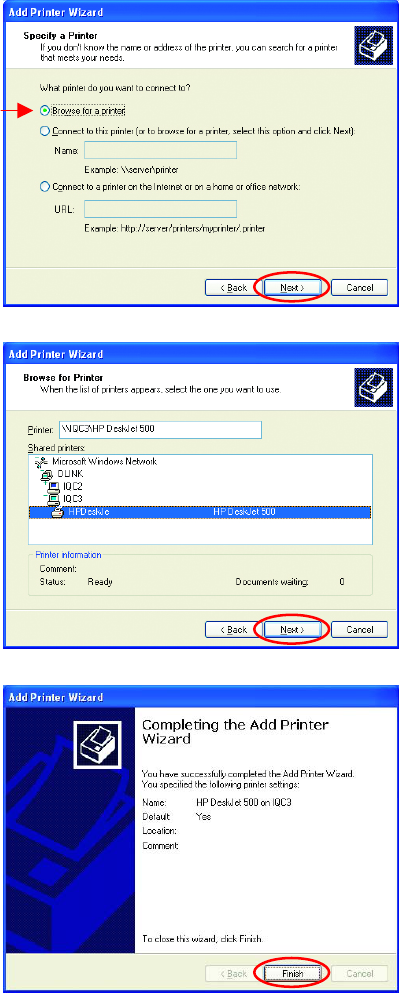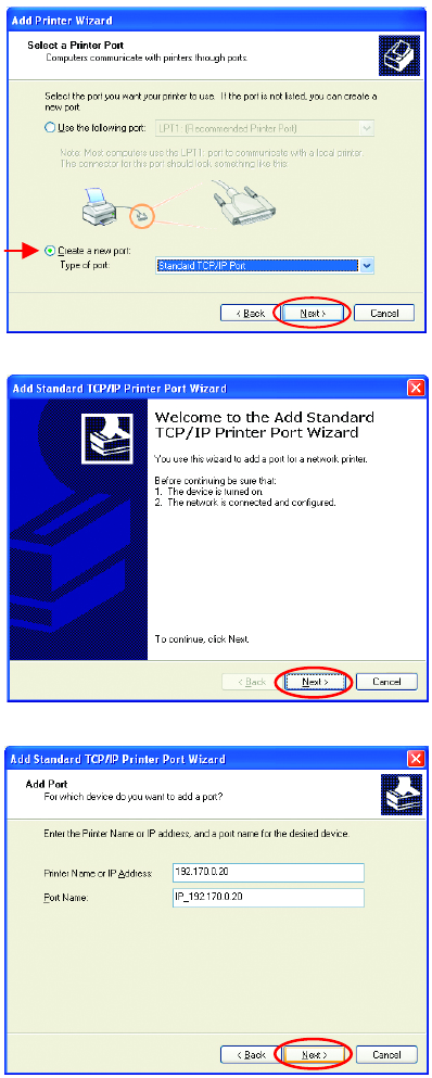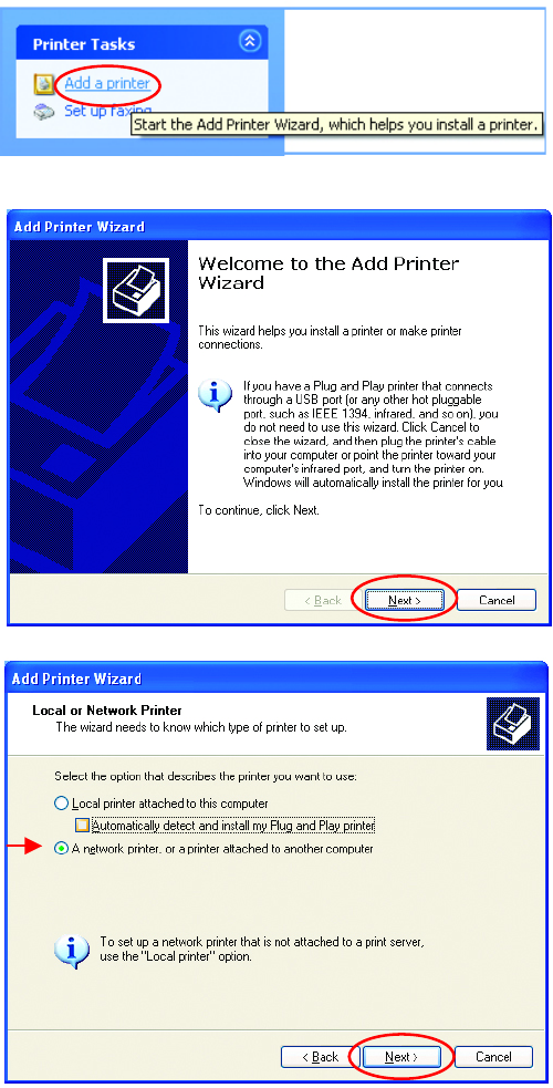 Gateway/Router,) use the Add Printer Wizard. Please follow the directions