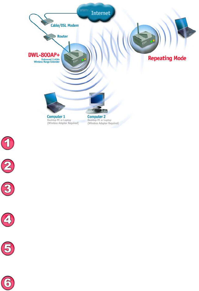 repeating mode, the DWL-800AP+ repeats the wireless signal of D-Link