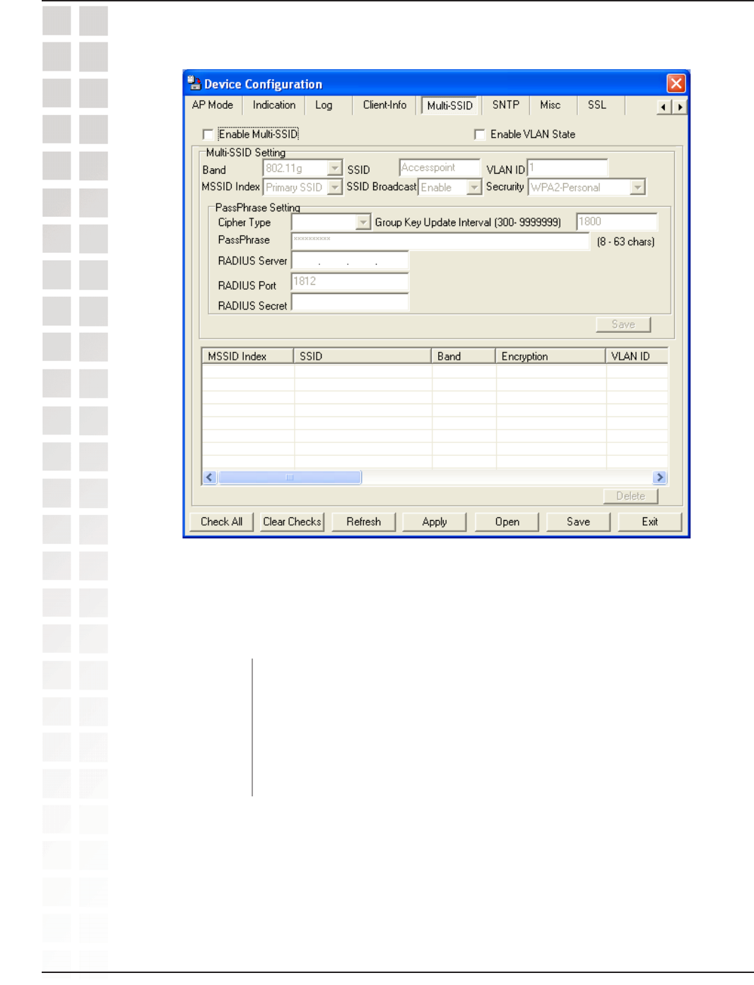 When the Primary SSID is set to use one key index for WEP, you can use the 3 other