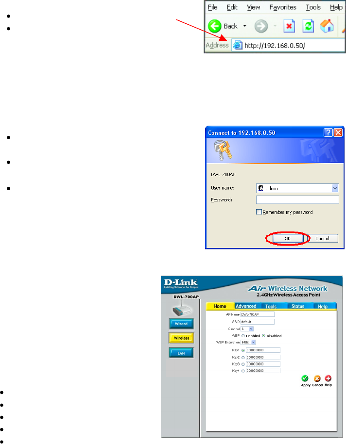 the IP Address of the DWL-700AP. The DWL-700AP’s default IP Address