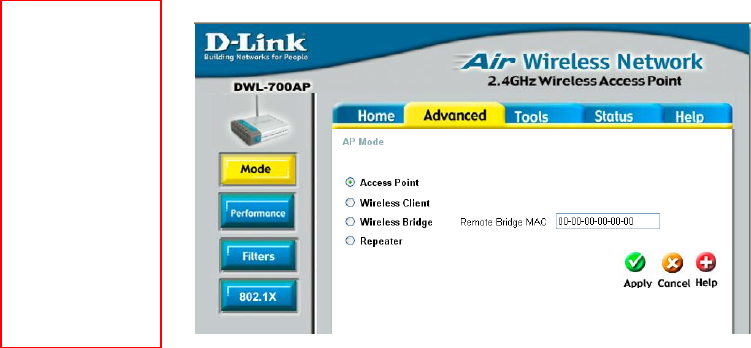 The DWL-700AP can be configured to perform in any one of five modes, as a