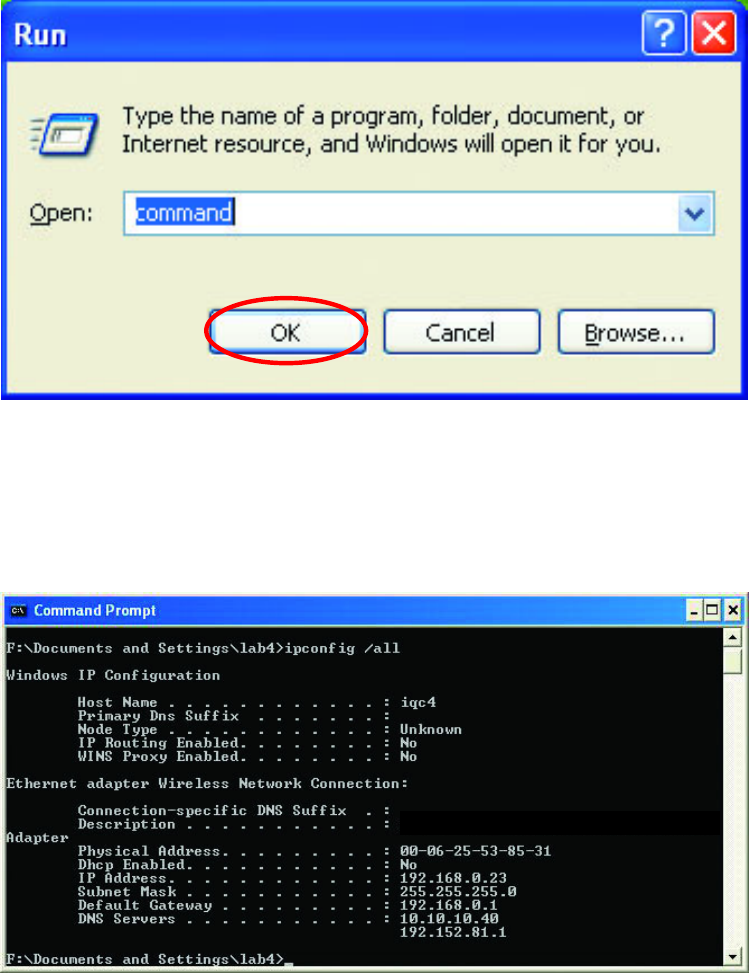 (Windows 98/ME users: go to Start > Run. Type winipcfg at the prompt.