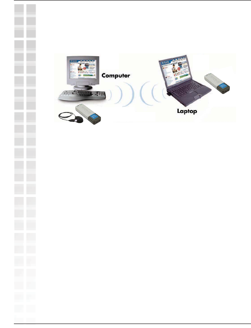 and adapters. The DWL-AG132 connects to any available USB port on a laptop or
