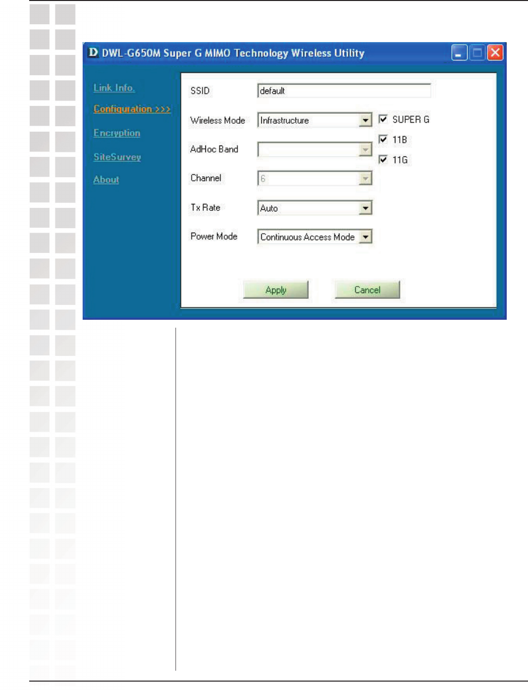 adapters. The DWL-G650M connects to any available Cardbus slot on a laptop Windows